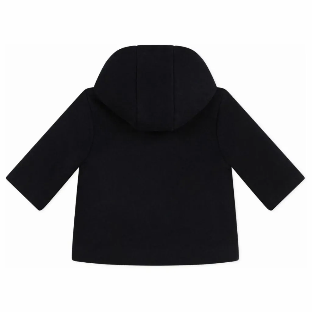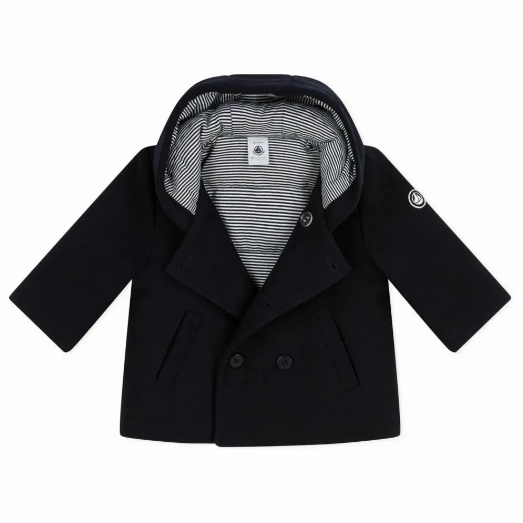 - Ouverture avec double boutonnage. Volume évasé. Poches sur les côtés. Doublure milleraies dans la capuche.