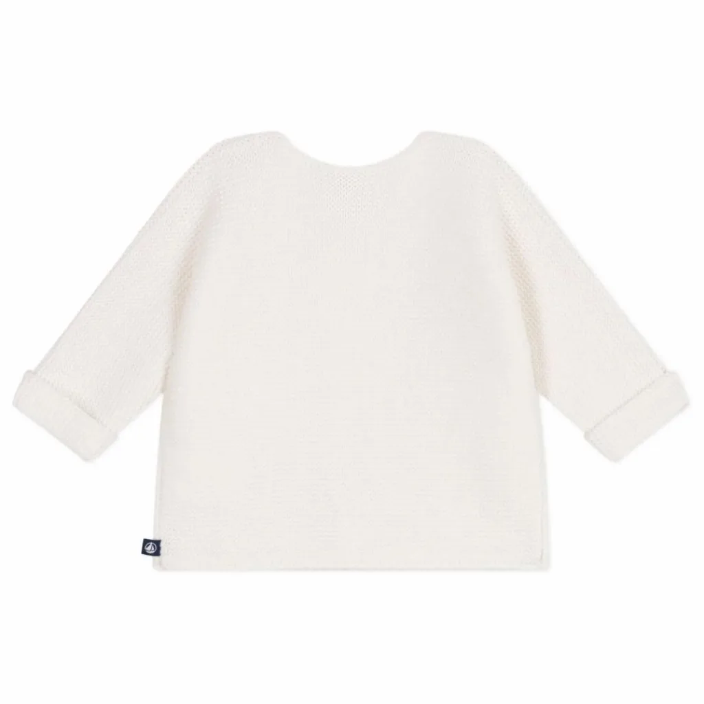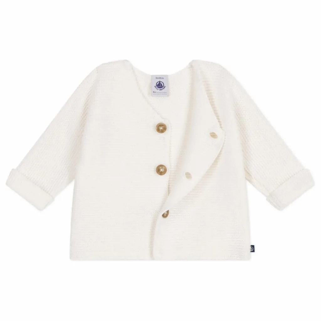 - Unisex moss stitch cardigan: a must-have for babies’ first few weeks! The full-length buttoned fastening at the front makes it very easy to put on.A must-have for your baby’s first few weeks.This little babies’ vest is available in four different colours.