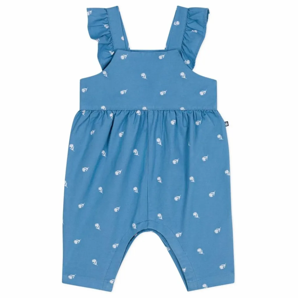 - Salopette longue en coton pour bébés, brodée de fleurs