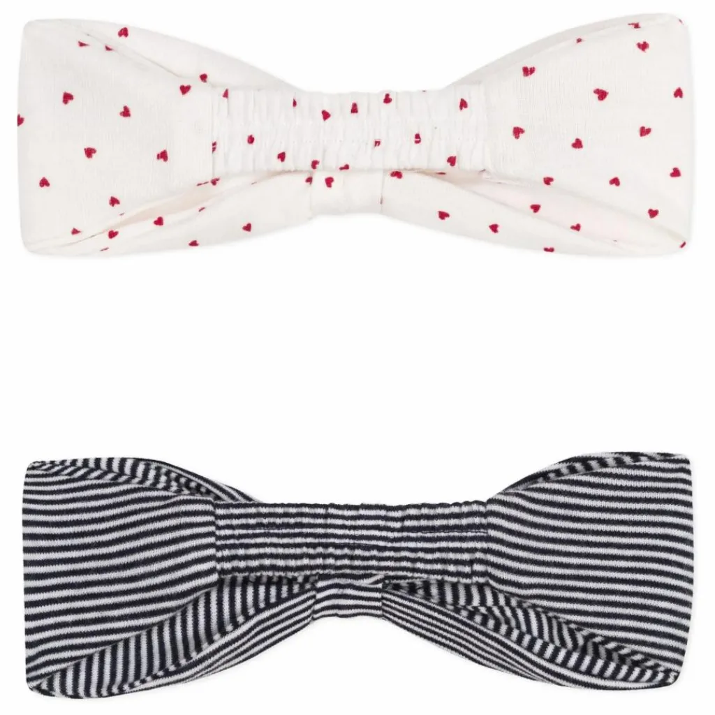 - Lot de 2 bandeaux en côte, la matière emblématique de Petit Bateau. L’un avec des coeurs et l’autre dans notre rayure marinière emblématique. Très pratiques, ils sont élastiqués à l’arrière. L’accessoire idéal pour ajouter une jolie touche finale à la tenue de votre bébé.