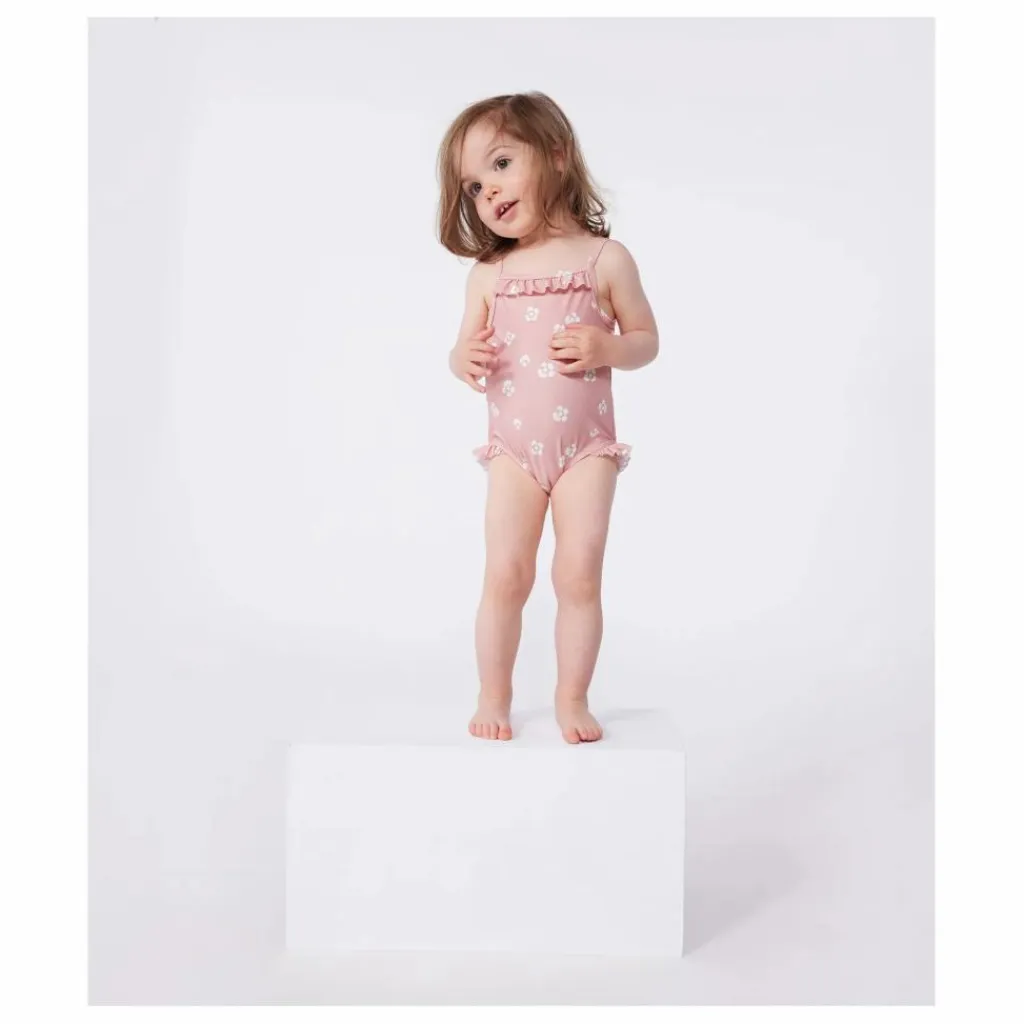 - Maillot de bain une pièce pour bébé avec des froufrous et un imprimé floral.