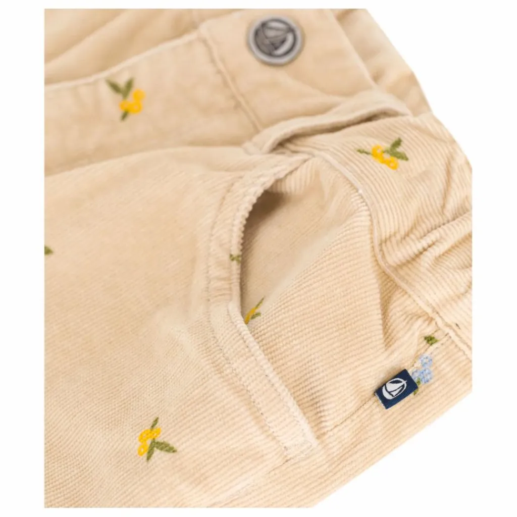 - Taille élastiquée et réglable, avec des passants. Ce pantalon s’ajuste à la morphologie de l’enfant. Ouverture avec bouton pression et zip.
