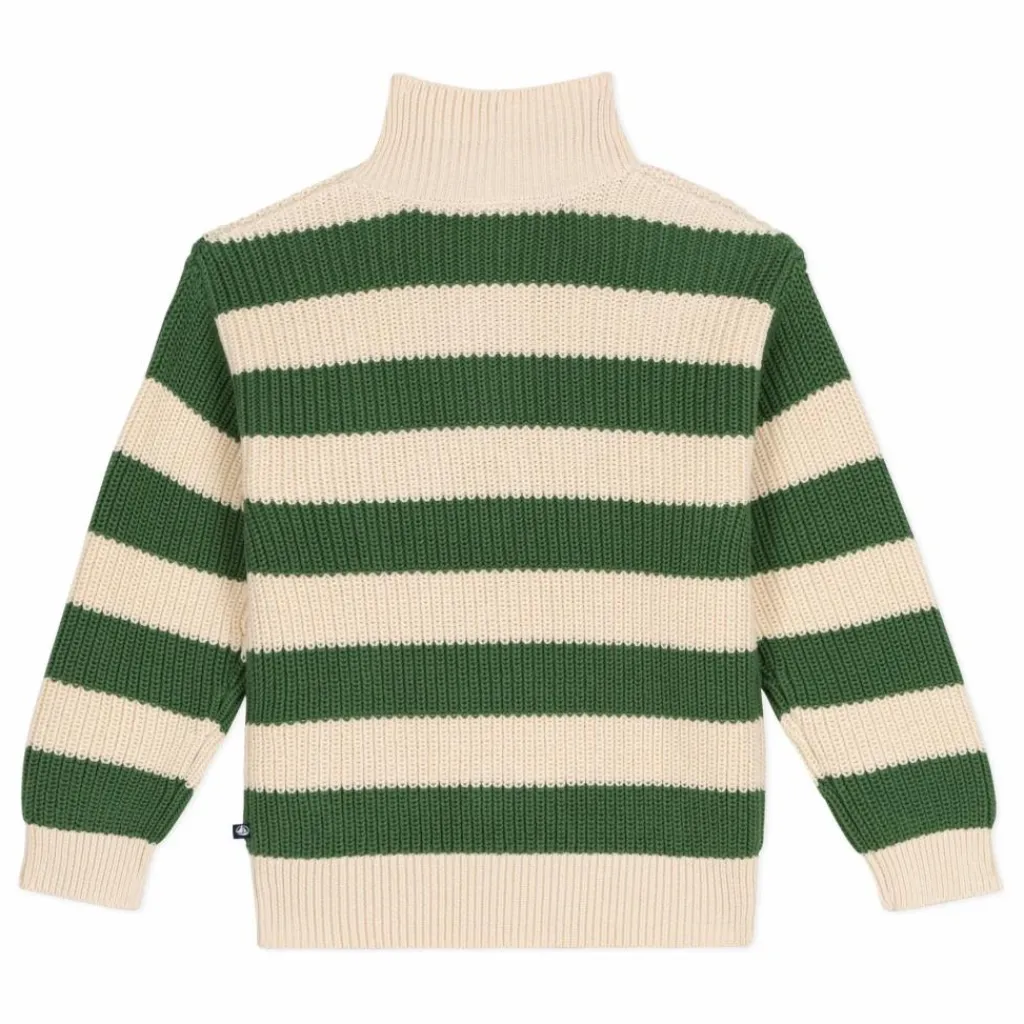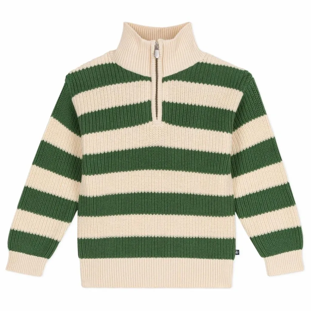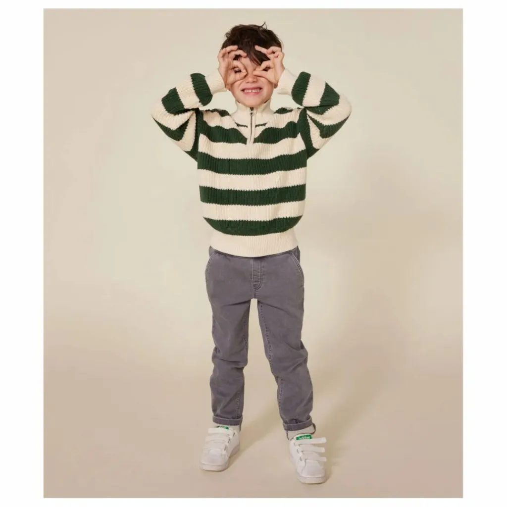 - Pull à col zippé et rayures large, en côte anglaise 100% coton.