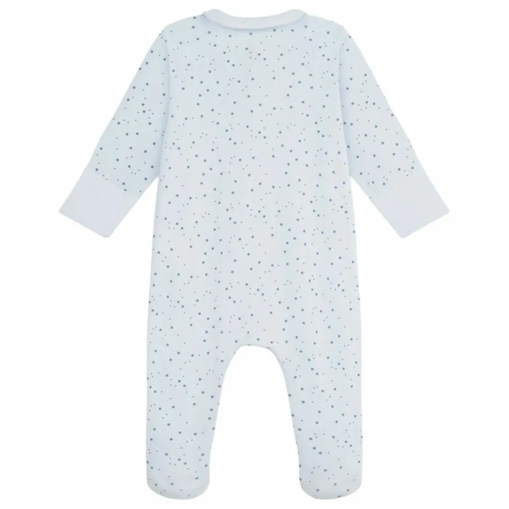 - Ce pyjama raffiné, avec un joli col et des moufles intégrées, est idéal pour les premiers jours du bébé.