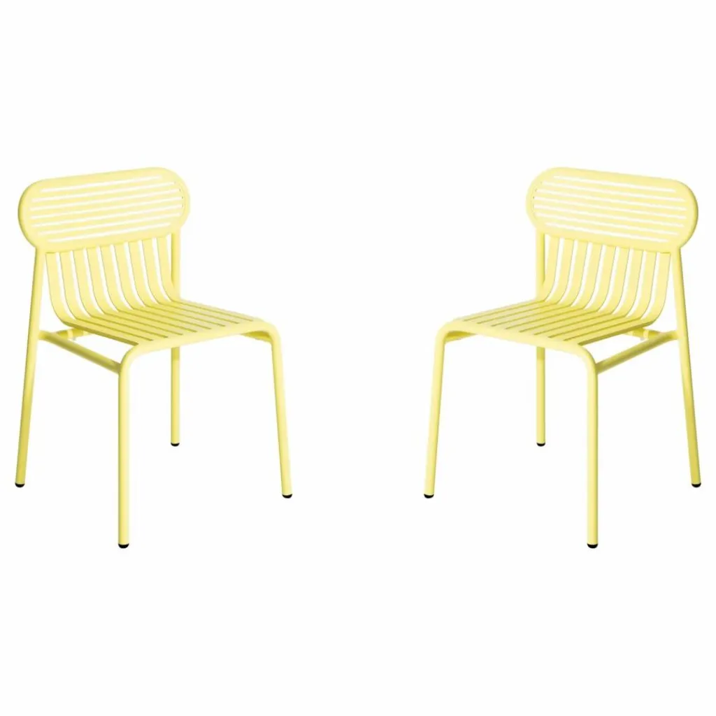 Cette chaise de jardin de la collection WEEK-END par Studio BRICHET-ZIEGLER combine esthétisme et fonctionnalité. Les assises ovales aux contours marqués créent un dossier au style graphique. Son design unique et confortable lui donne un charme intemporel. Fabriquée en aluminium, elle est à la fois robuste et légère. Empilable par 6, elle résiste à l’eau et aux UV, idéale pour une utilisation en bord de mer, avec une garantie de 5 ans.