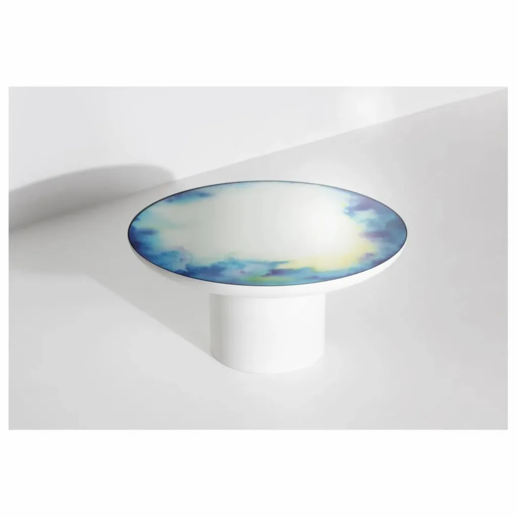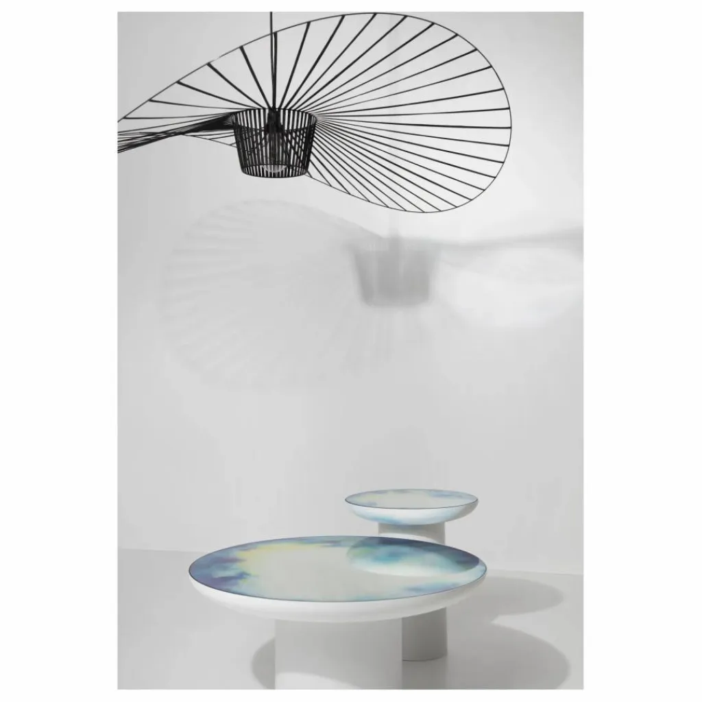 Les tables basses miroir FRANCIS sont nées du croisement de formes totémiques et solennelles avec le miroir iconique de Petite Friture, détenteur du Wallpaper Design Award. Pour cette réinvention de FRANCIS, la designer Constance Guisset a réalisé à la main des aquarelles en jouant avec deux séries de teintes. Les aquarelles ont ensuite été travaillées numériquement pour amplifier le jeu de transparence des couleurs, renforcer ou adoucir le mouvement des pigments et ainsi donner naissance à six aquarelles uniques. Puis, les aquarelles imprimées sur du miroir ont été saisies dans un feuilletage de verre apportant profondeur au regard et résistance à ces tables fonctionnelles.
