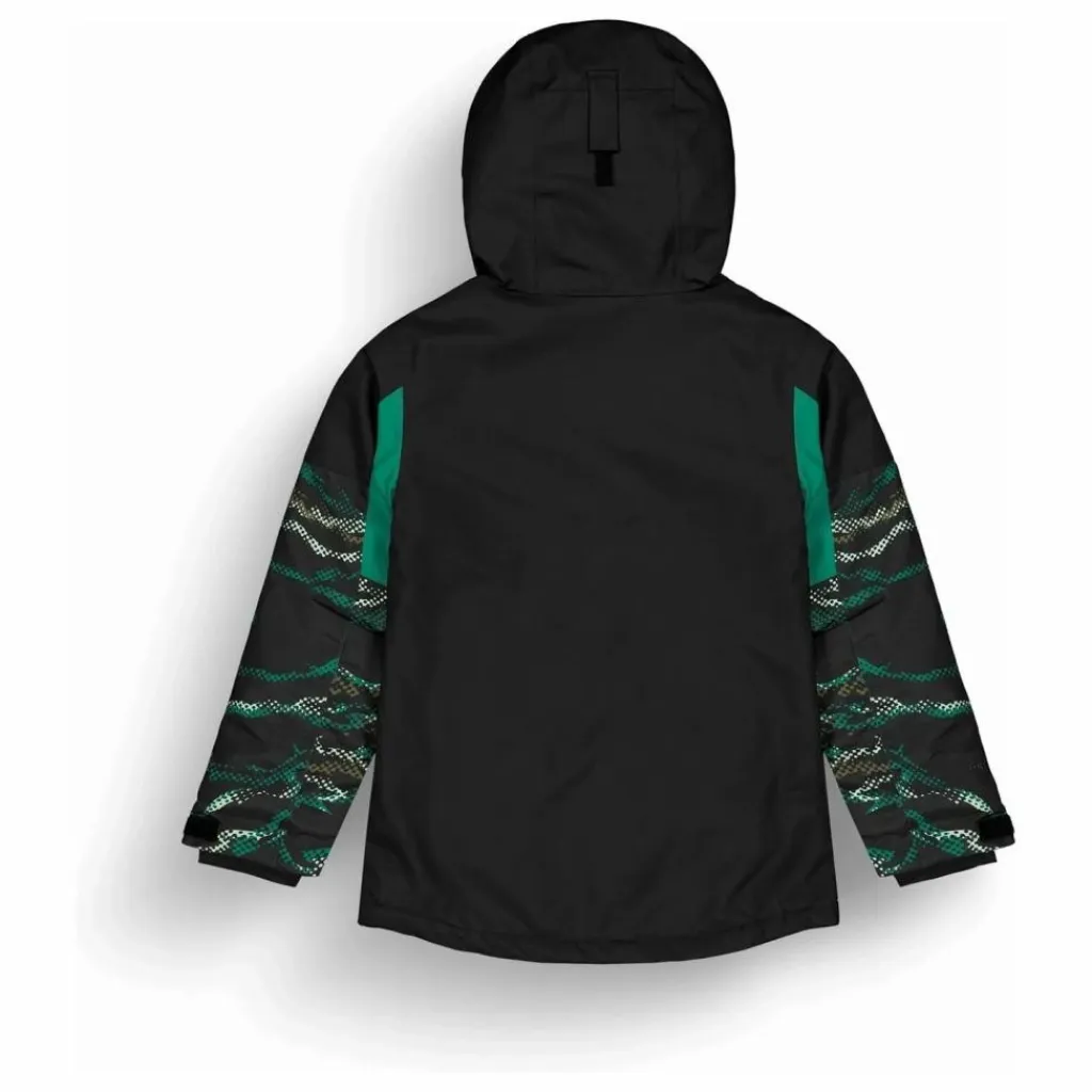 - Poches latérales avec boutons-pression-Système grow with me-Capuche ergonomique avec système d’ajustement en un point-Système de serrage-Jupe pare-neige fixe-Poche intérieure zippée-Poches latérales filet permettant de ranger une bouteille-Technologie Flex Skin ultra-stretch en néoprène-Système de réglage aux poignets-Système de maintien des gants