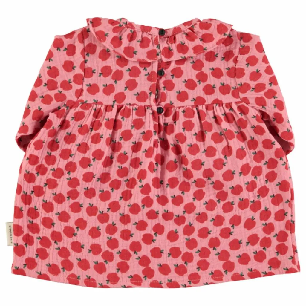 - Robe pour bébé avec col à volants.Poignets élastiqués.Boutons noirs au dos. Empiècement à volants.