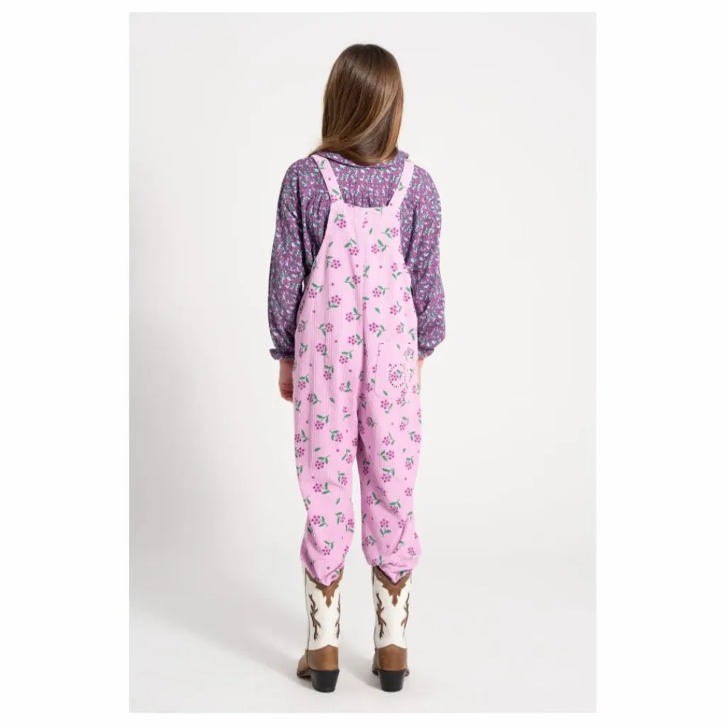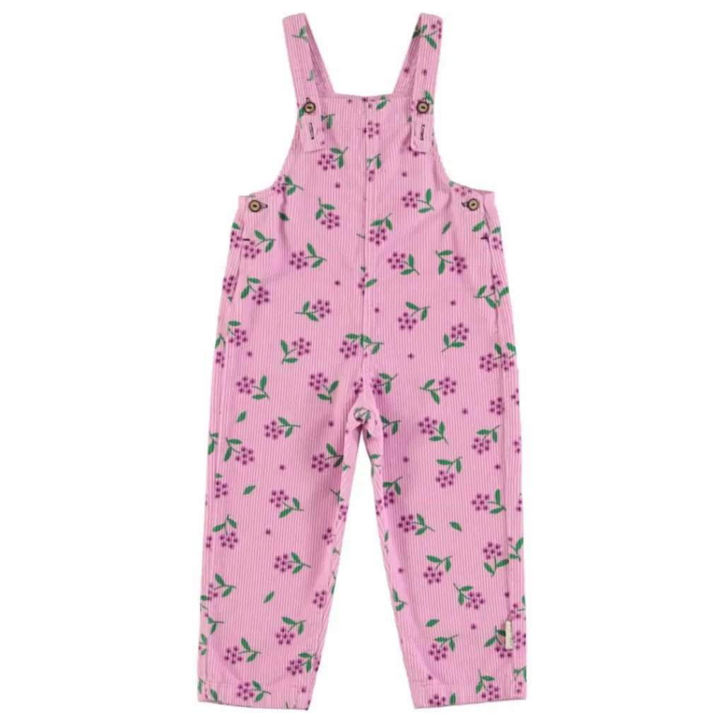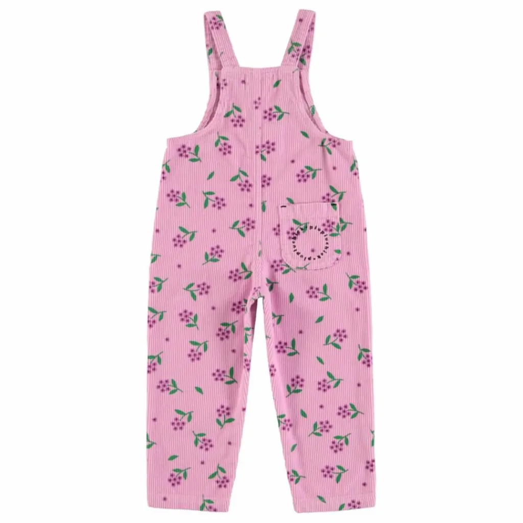 - Salopette à bretelles réglables. Elle est dotée d’une pochae arrière sur laquelle est brodé un logo noir. Les tailles bébé ont des boutons-pression entre les jambes.