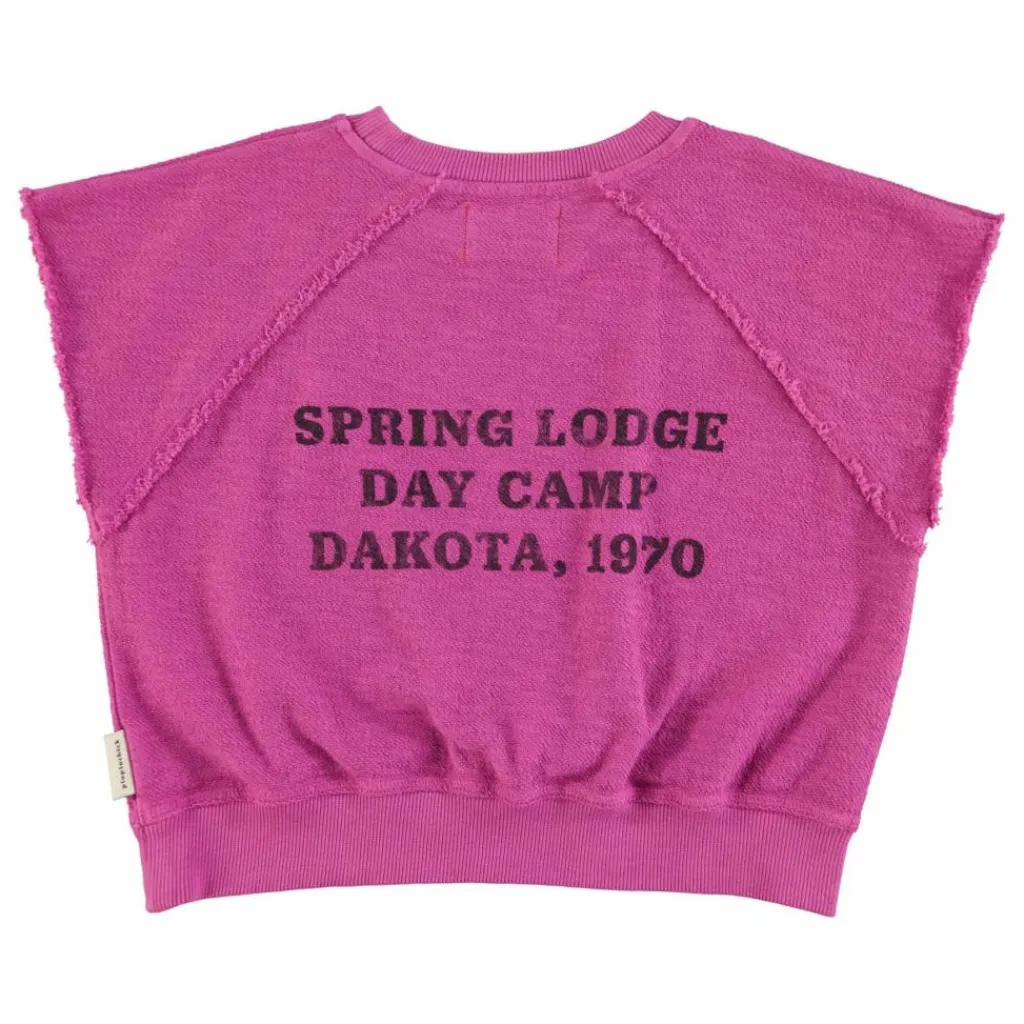 - Sweat sans manches en coton fleece flamé (texture extérieure) avec impression devant et derrière et ourlets côtelés.