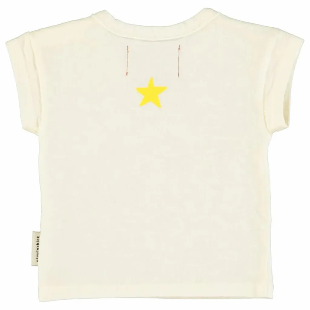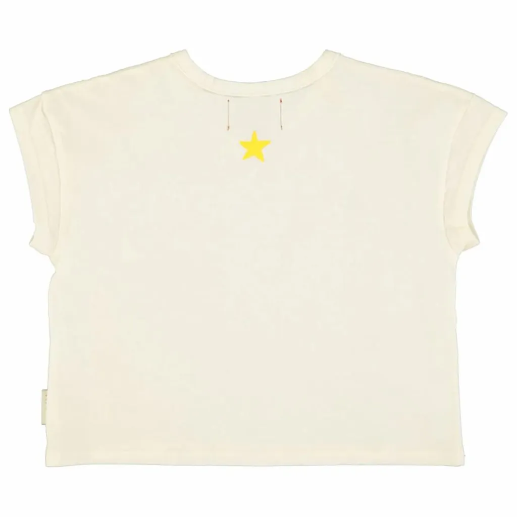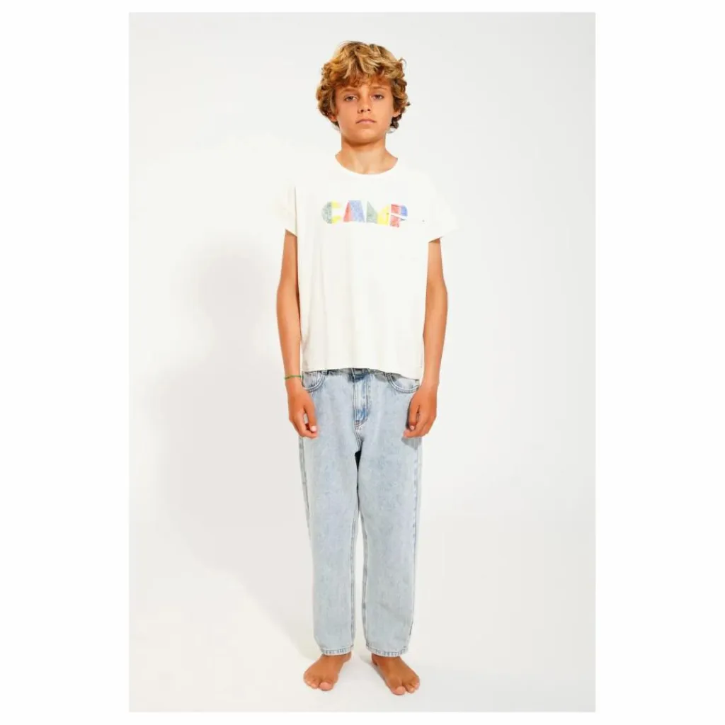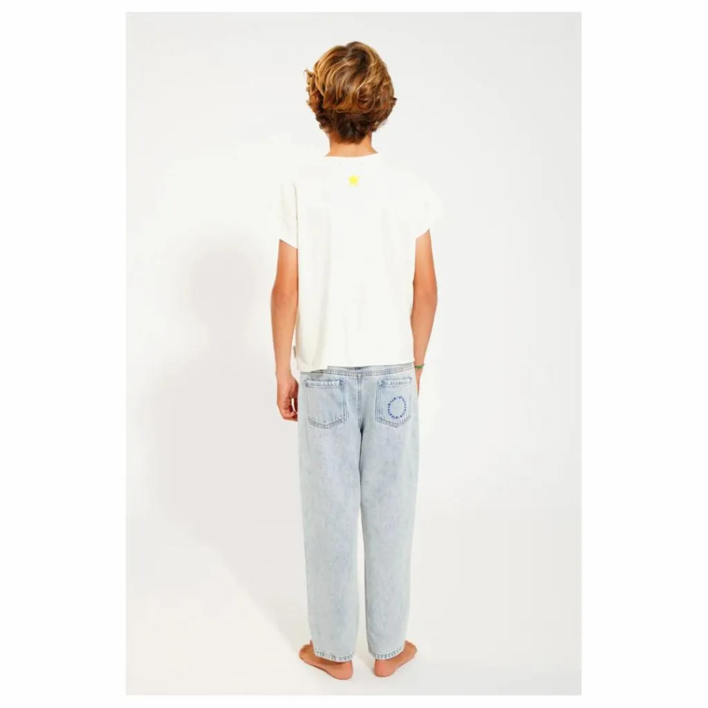 - T’shirt en jersey flammé avec poche poitrine en bord brut. Imprimé sur le devant et logo étoile jaune au dos.