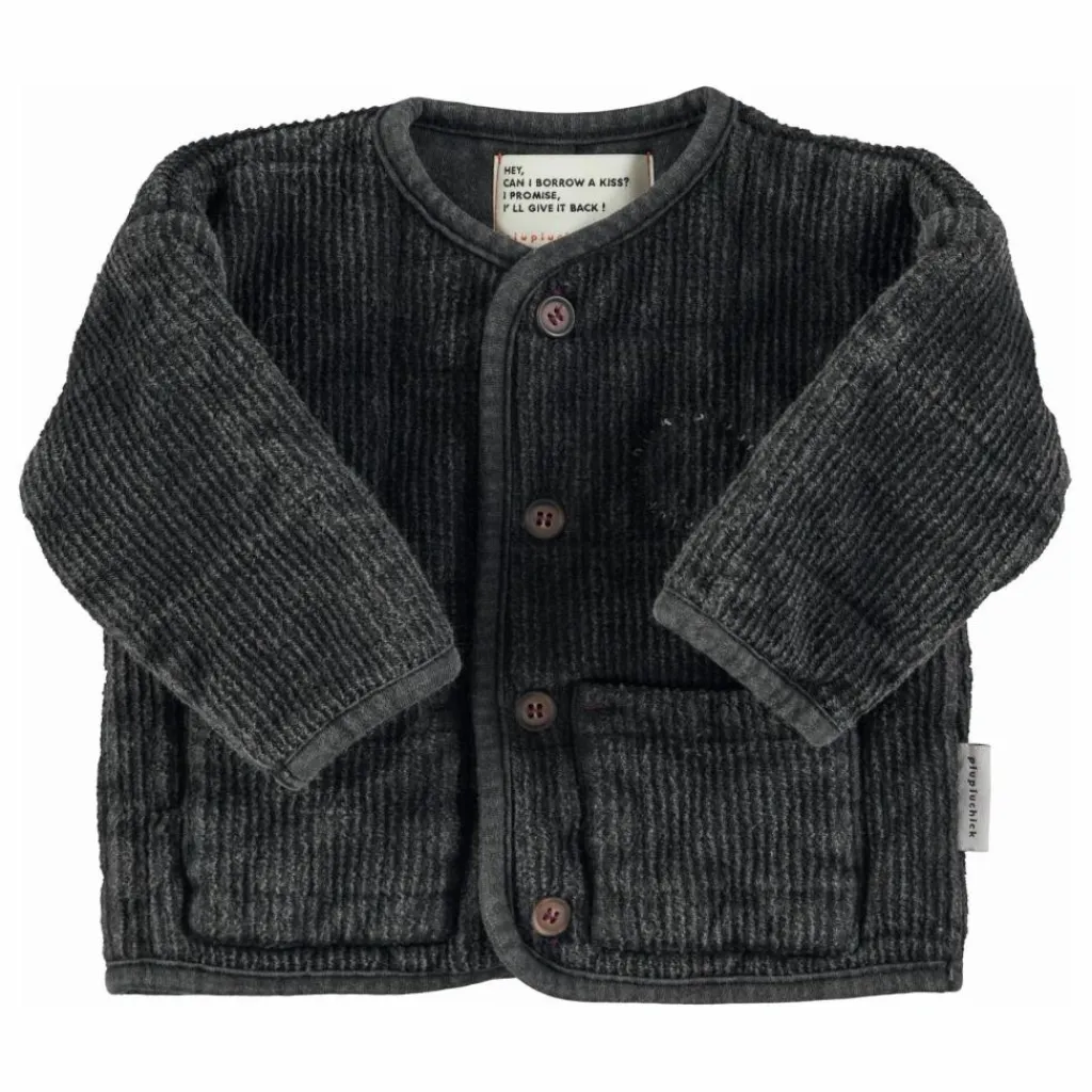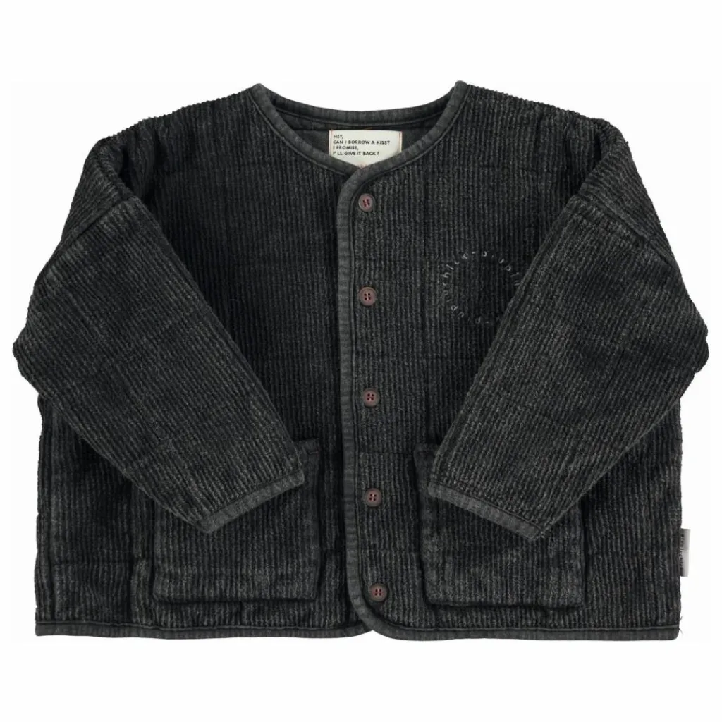 - Veste matelassée. Boutons sur le devant. Poches plaquées sur le devant et broderie du logo bordeaux sur la poitrine.