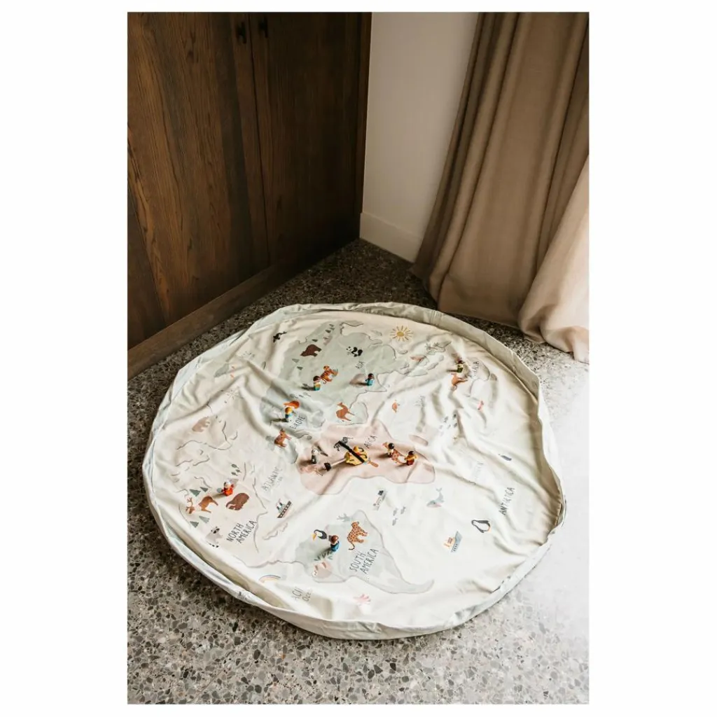 Permettez à votre enfant de découvrir le monde depuis la maison avec le tapis de jeu play&go® world map – un tapis éducatif et sac de rangement 2-en-1 à la fois pratique et ludique.