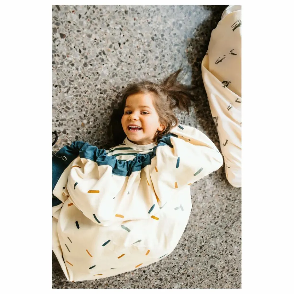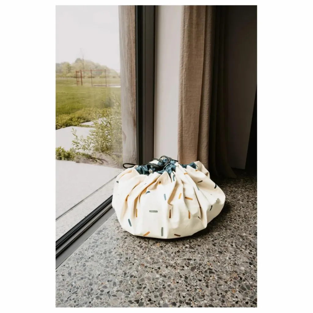Son design à la fois ludique et minimaliste apporte une touche de gaieté à chaque pièce et séduit autant les enfants que les parents.Déployez-le pour des heures de jeu créatif, puis tirez simplement sur les cordons pour le transformer en sac de rangement pratique – parfait à la maison ou en déplacement.