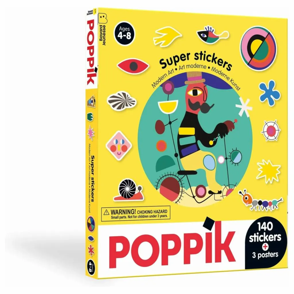 Les enfants s’amuseront à composer 3 grandes images en collant les stickers sur le décor, ils découvriront ainsi de nombreuses couleurs, formes et mises en scène de l’art moderne… Une activité qui ne tache pas, pour faire travailler ses dix doigts !