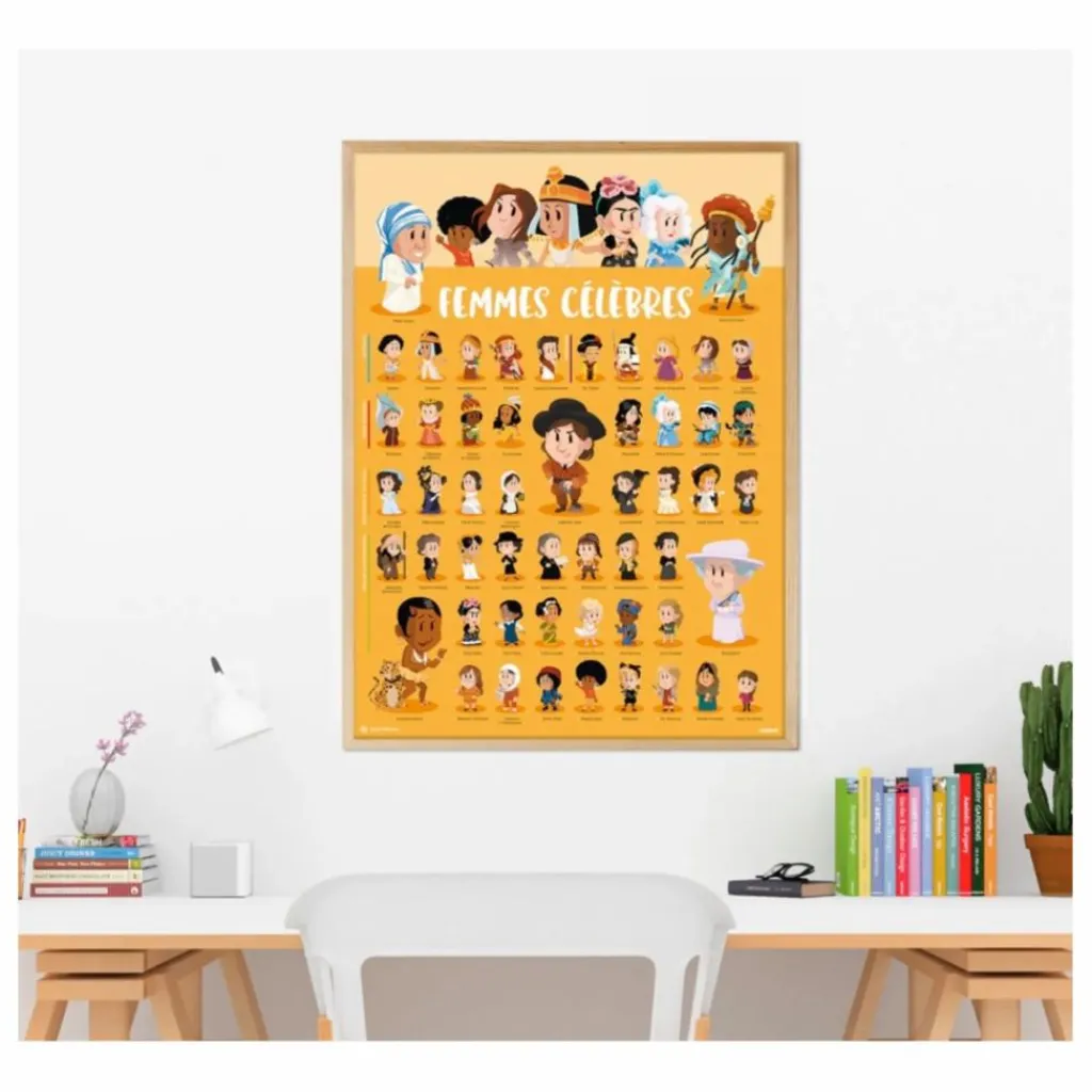 Avec ce jeu, vos enfants vont découvrir des femmes parmi les plus célèbres du monde : femmes politiques, artistes, femmes engagées dans tous les domaines, scientifiques… Un poster inspirant qui, une fois complété, viendra décorer la chambre.