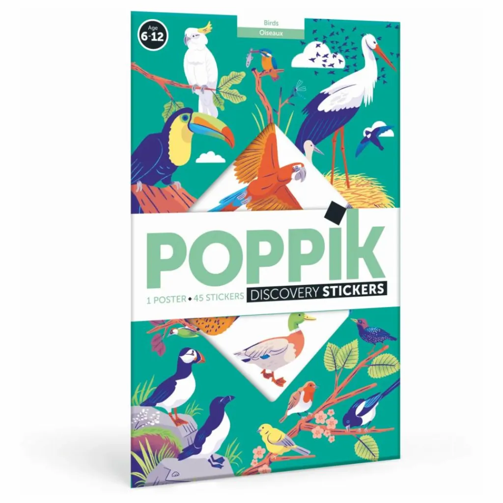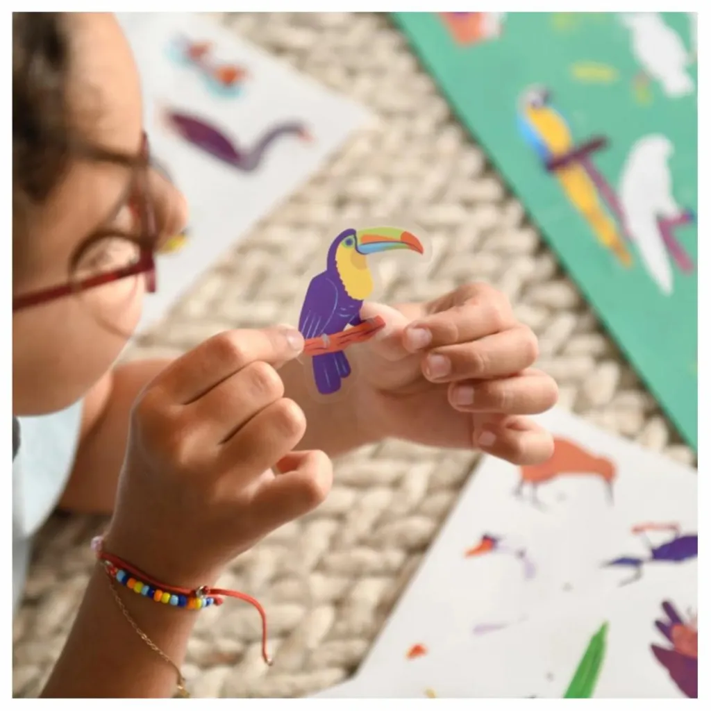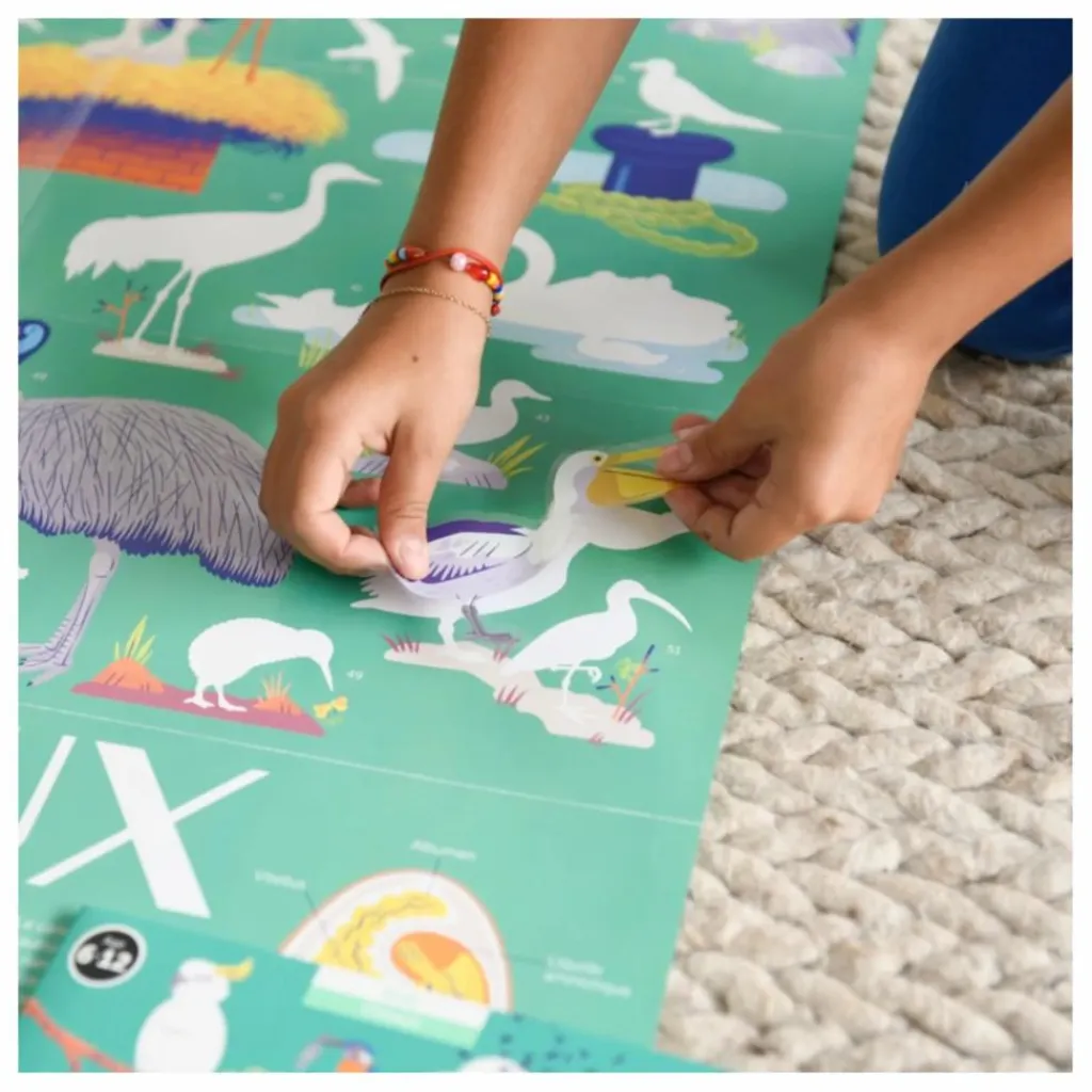 Sur ce poster Oiseaux, vos enfants vont retrouver les oiseaux emblématiques du monde entier : la cigogne, les perroquets, la mésange ou encore le martin-pêcheur. À eux de coller les stickers sur le grand poster pour reconstituer l’affiche. Une manière ludique de se passionner pour ce sujet. L’activité est facile, ce qui permet à votre enfant de jouer seul sans la présence d’un adulte.