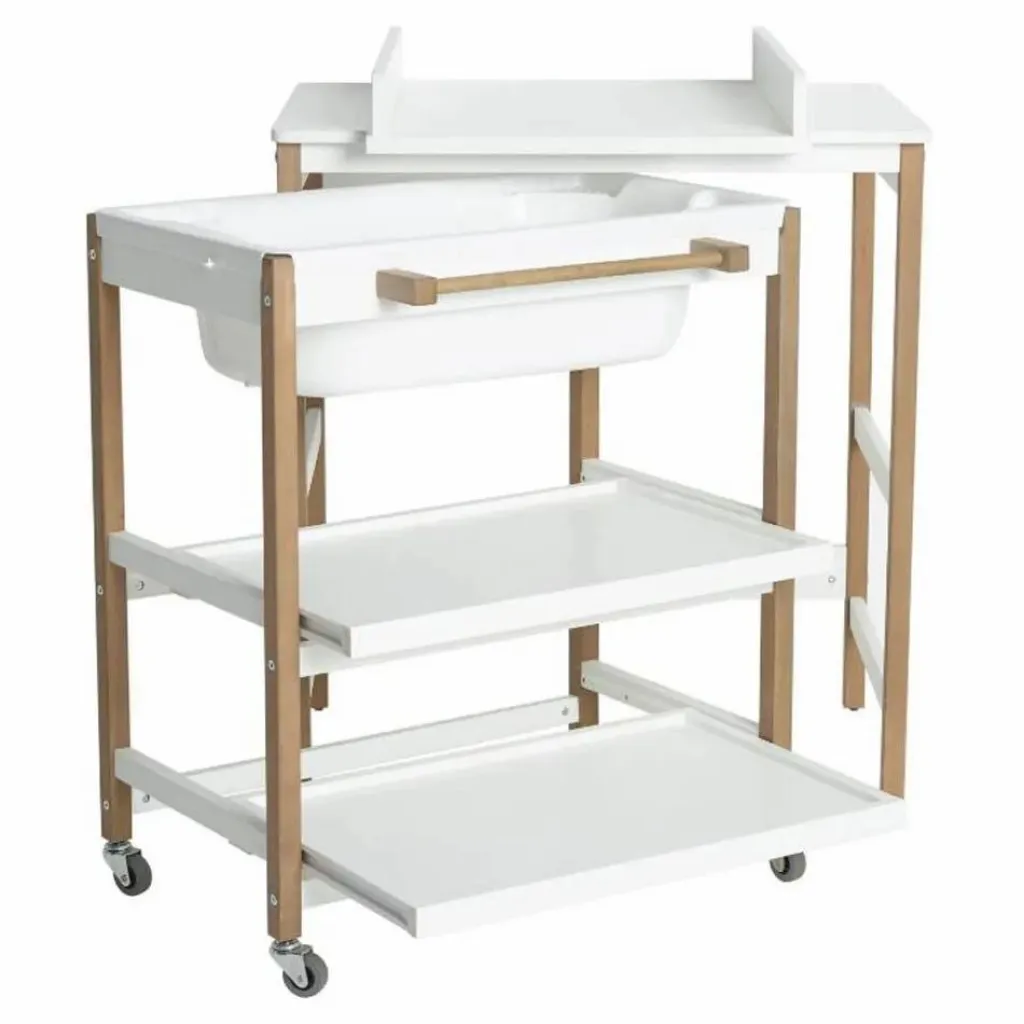 - Comprend 1 baignoire, 2 étagères amovibles, 1 extension à langer, 1 tuyau de vidange