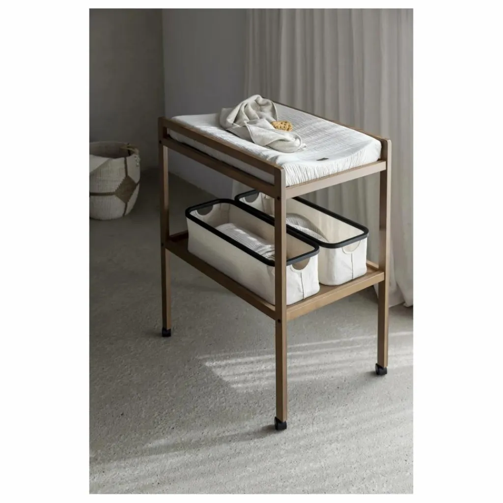 - Rendez le moment du change plus confortable avec notre « Table à Langer – Mori », conçue pour le bien-être de votre bébé et le vôtre. Elle offre une large surface de 50 cm x 70 cm pour changer bébé aisément et est équipée de roulettes amovibles pour un déplacement facile. Des paniers optionnels référencés 65MMxx peuvent être ajoutés pour un rangement pratique de vos accessoires. Conforme à la norme EN 12221-2008+A1:2013, notre table assure la sécurité de votre enfant. Disponible en noyer ou bois naturel, elle s’intègre harmonieusement à tout décor, alliant esthétique et fonctionnalité.