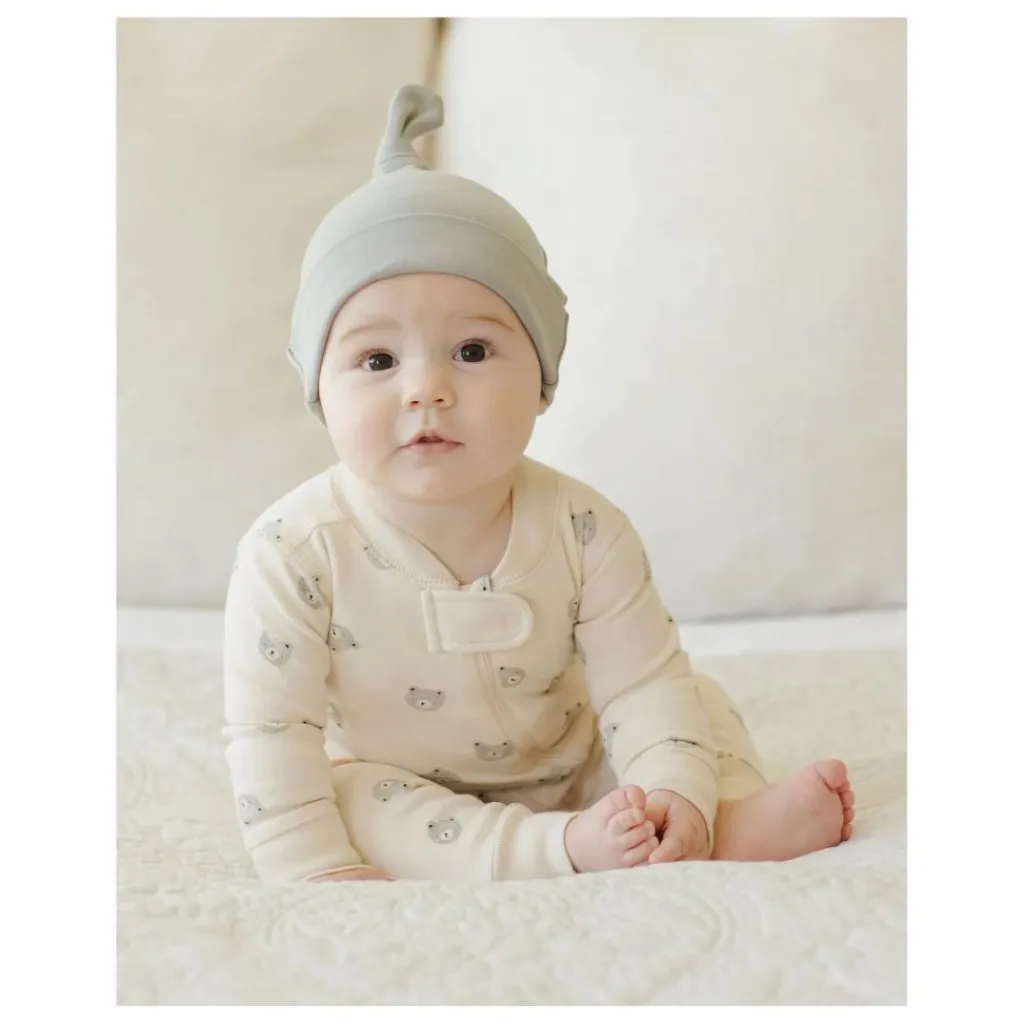 - Bonnet noué en jersey brossé doux et extensible pour une tenue confortable et douillette, dans notre teinte « bleu acier ».