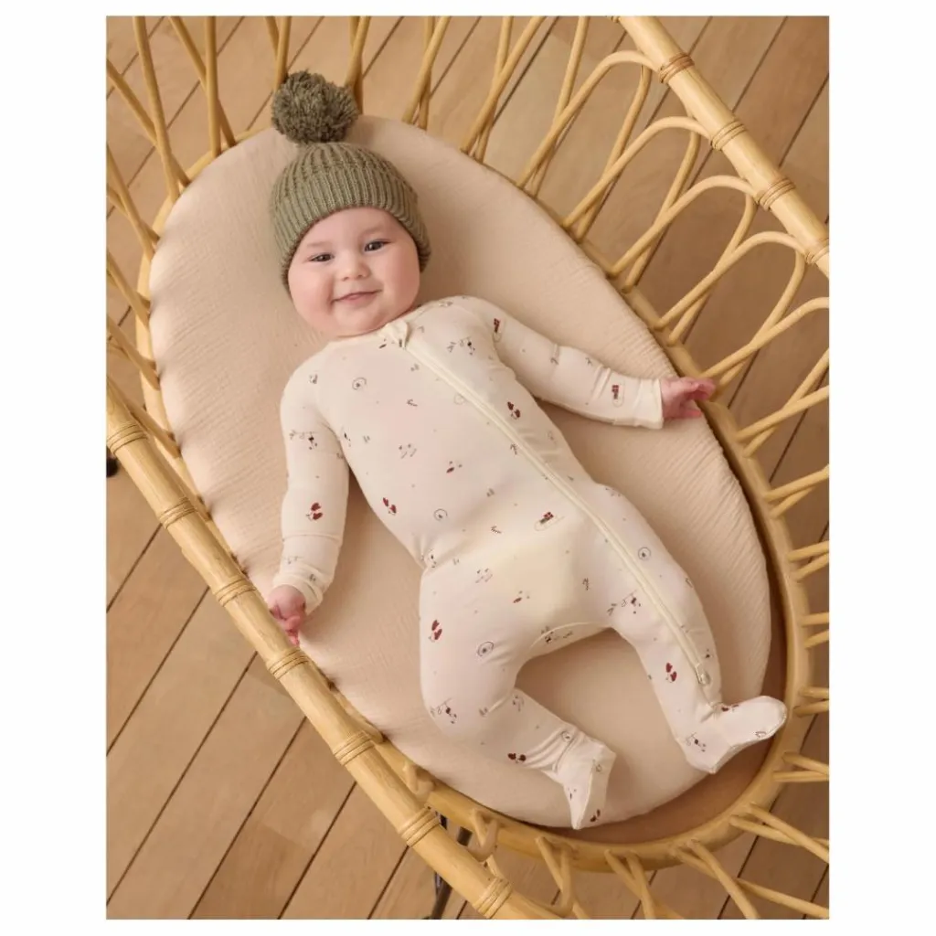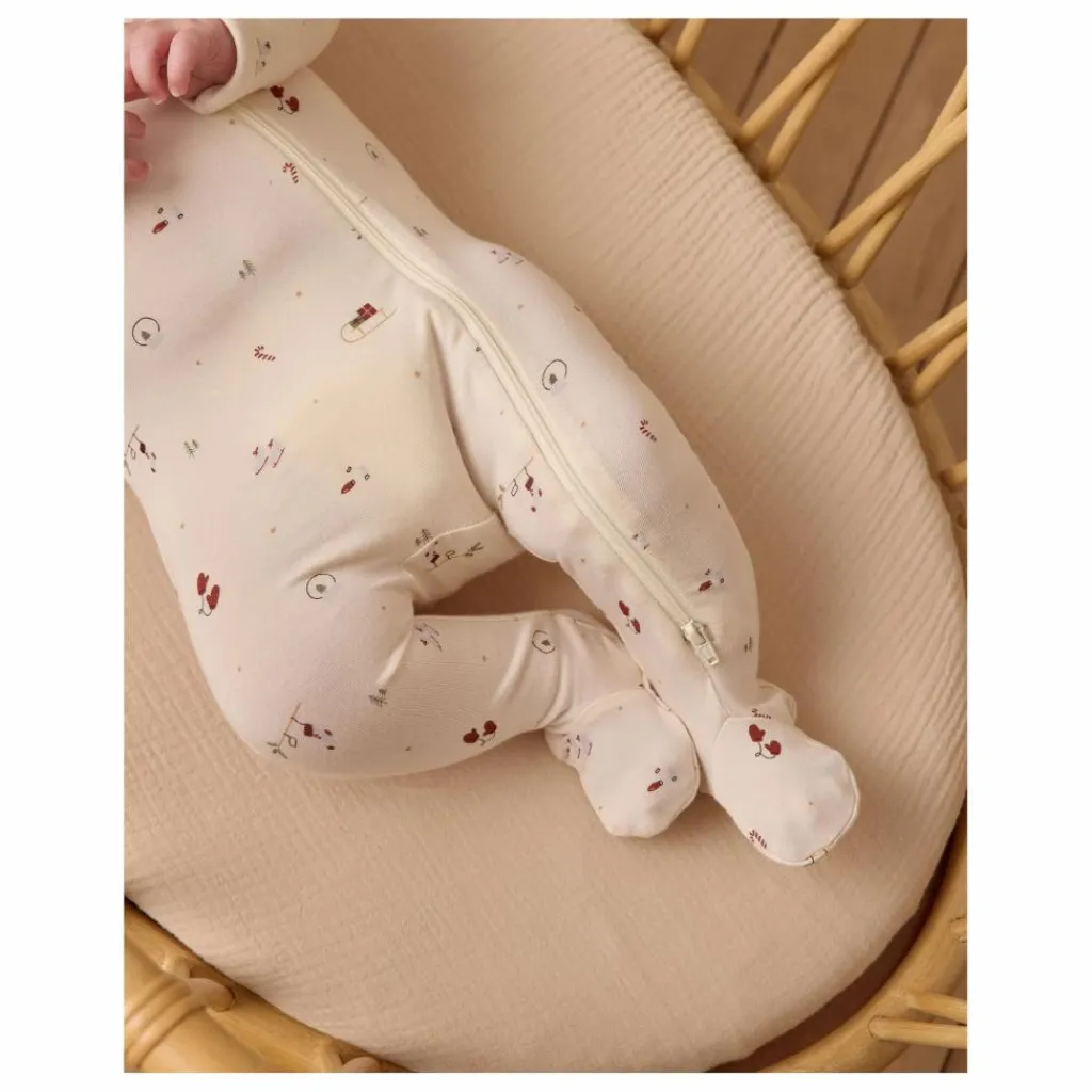 - Ce chausson à double fermeture éclair est fabriqué à partir de notre tissu doux et extensible en bambou. Moufles à rabat incluses dans les tailles NB – 3-6M. Sérigraphie en relief sur les semelles des tailles 6-12M pour plus d’adhérence. Avec notre impression « winter wonderland » sur notre teinte « natural ».
