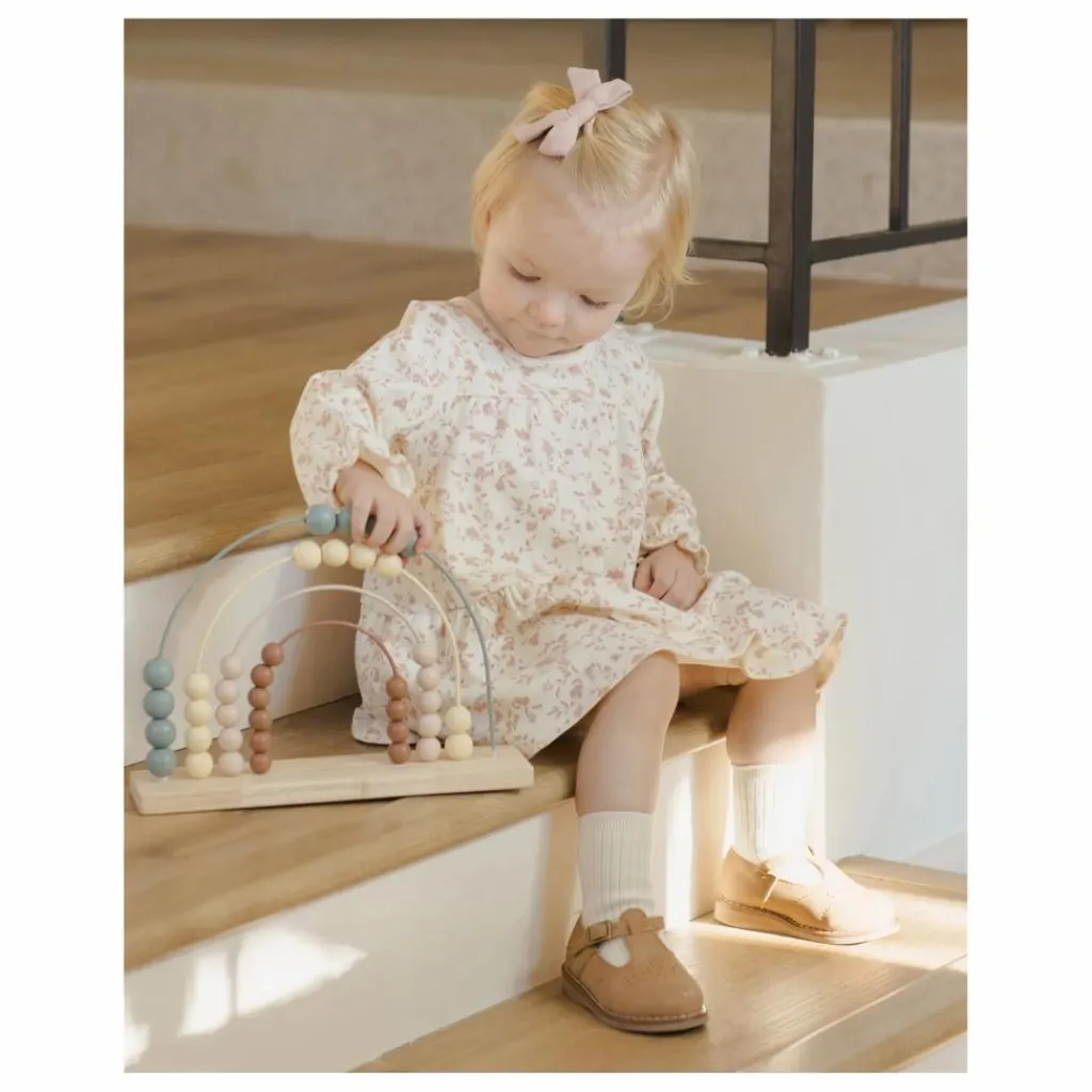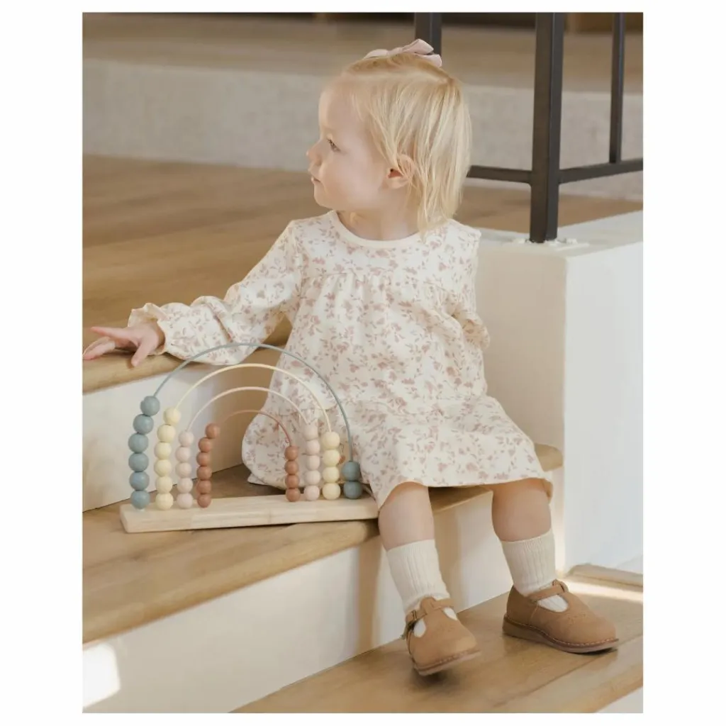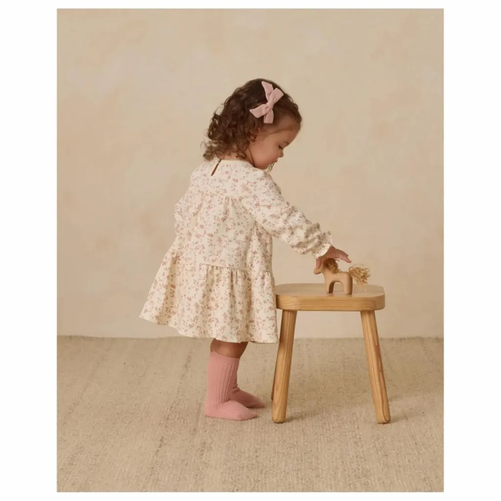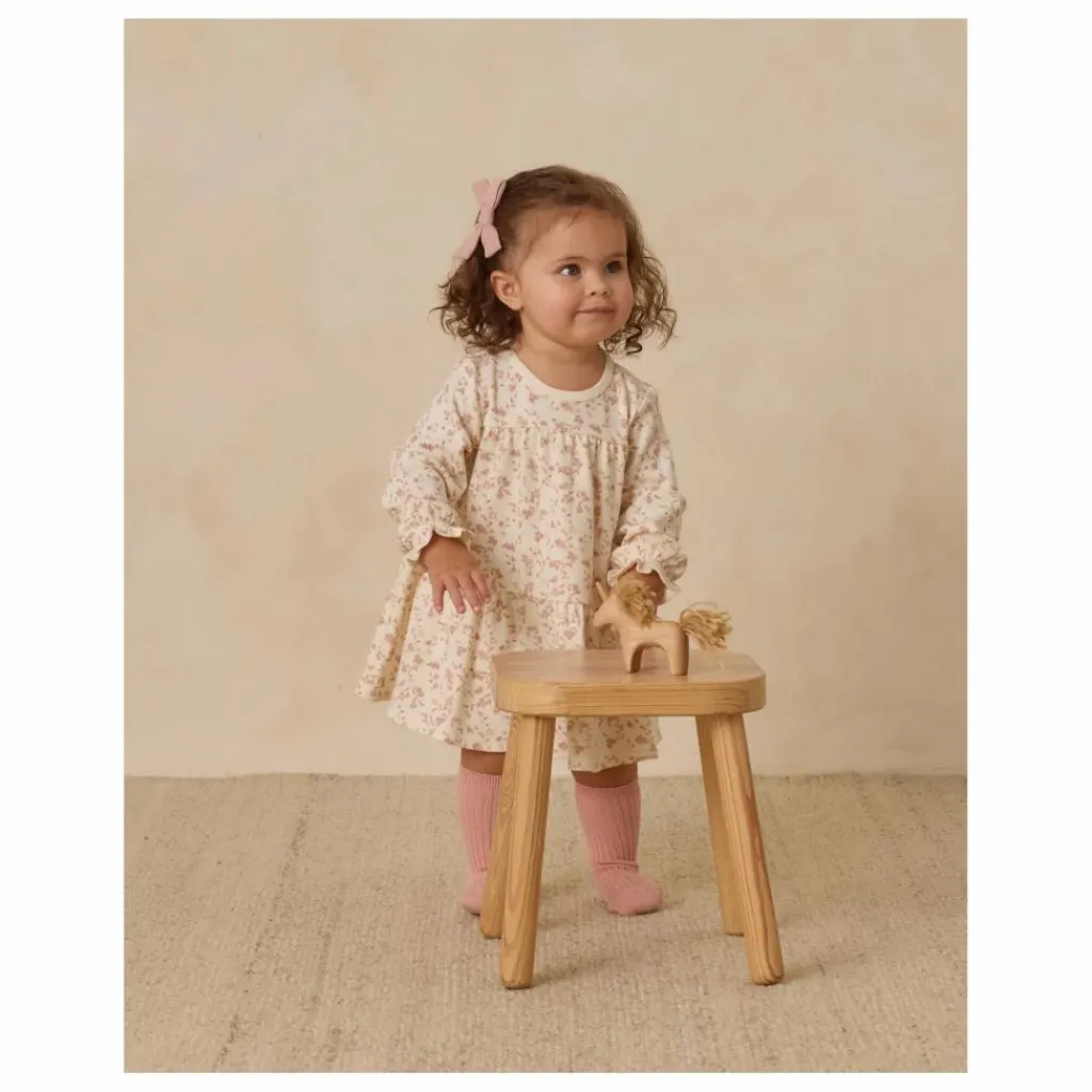 - Robe à manches longues avec des superpositions de couches douces et un bouton en forme de noix de coco au dos. Une culotte bouffante coordonnée est incluse dans toutes les tailles. L’imprimé « jardin français » se trouve dans la teinte « ivoire ».