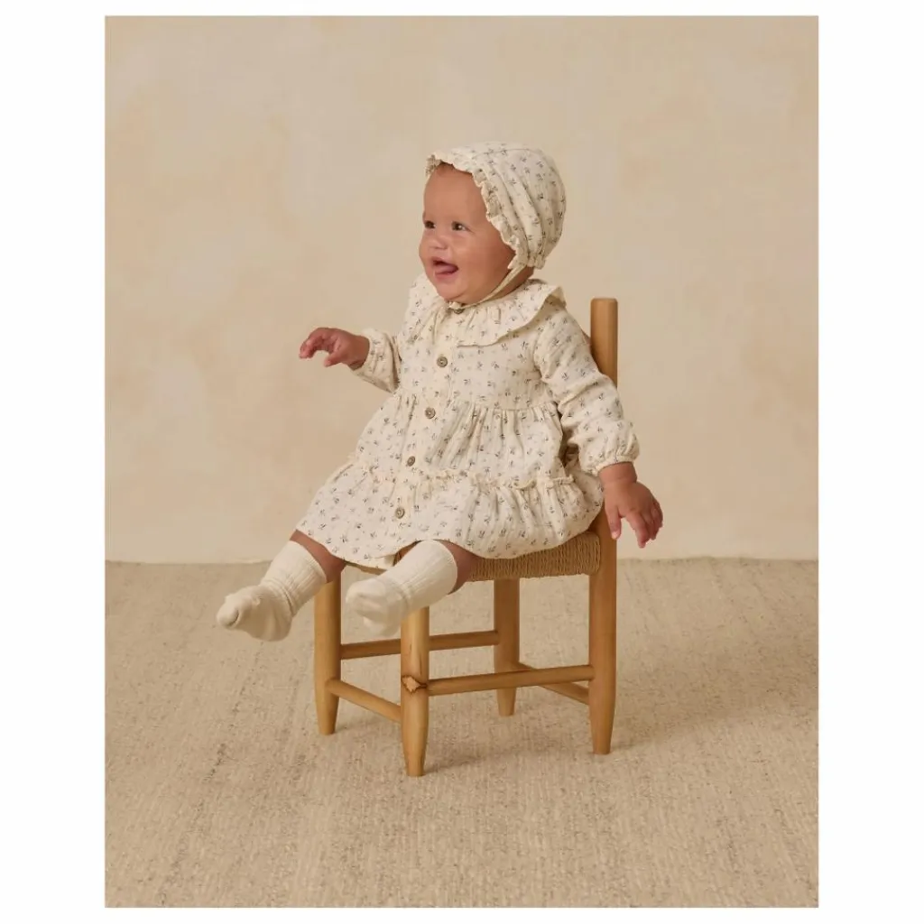- Cette robe à manches longues est dotée d’un col à volants et d’un devant boutonné pour un look charmant et sans effort. Les culottes bouffantes coordonnées sont incluses dans les tailles 0-3M – 2-3Y. Imprimé « bluebell » sur notre teinte « natural ».