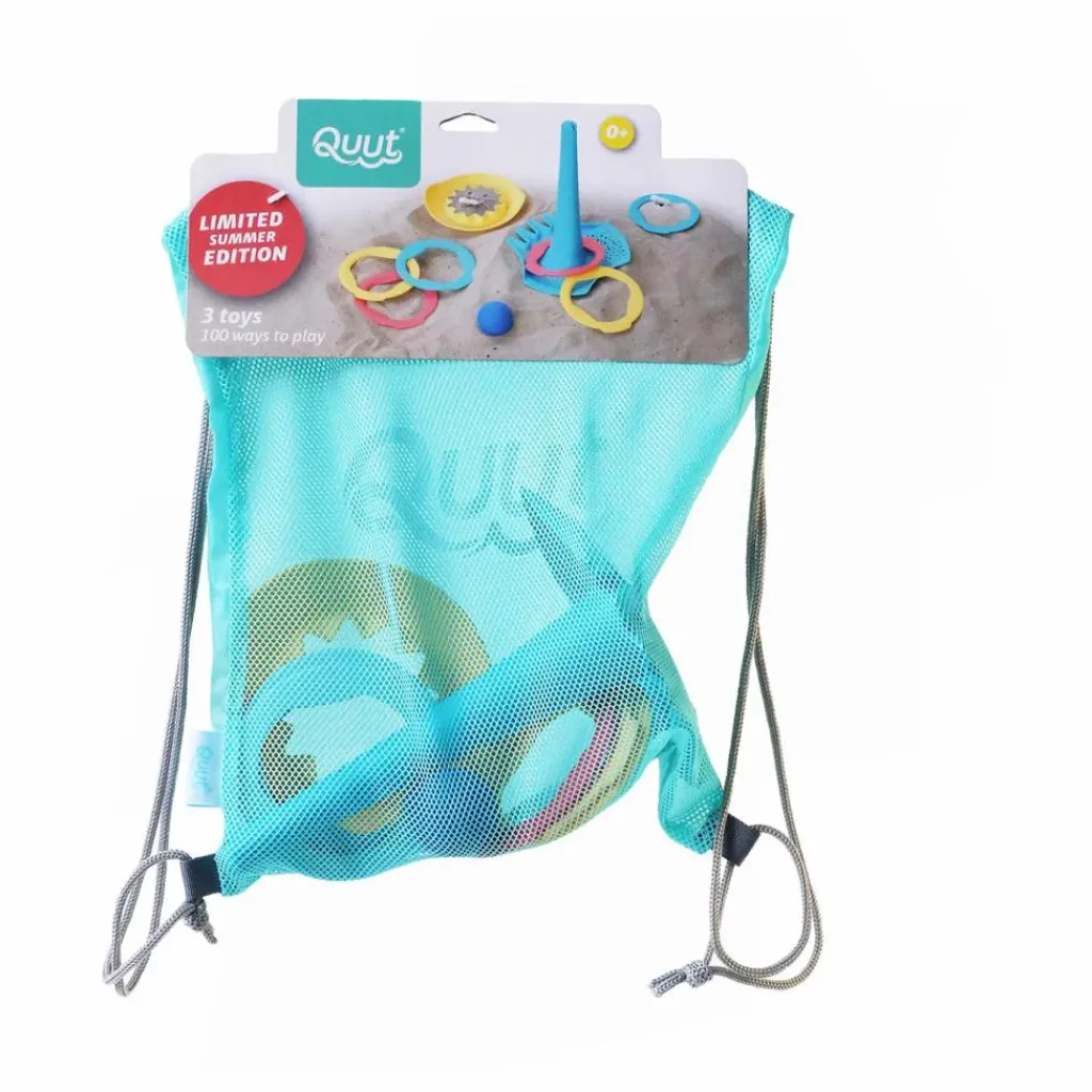 Découvrez le kit Triplet, composé d’un jouet multi-fonction, de plusieurs anneaux de jeu, d’une balle, d’un moule et d’un sac de rangement, il offre plusieurs possibilités de jeux en extérieur. Il sert d‘abord de pelle, il aide les enfants à creuser des trous et à construire des fondations, il peut aussi servir de tamis afin de trier le sable fin d’autres matériaux ou particules plus grossières, il se transforme également en râteau ou en entonnoir mais ce n’est pas tout ! Vous pouvez aussi vous en servir de jeu d’adresse : placez alors le plot sur un terrain plat et jetez les anneaux autour de celui-ci. Un jouet idéal, que ce soit à la plage, dans le jardin ou dans le bain !