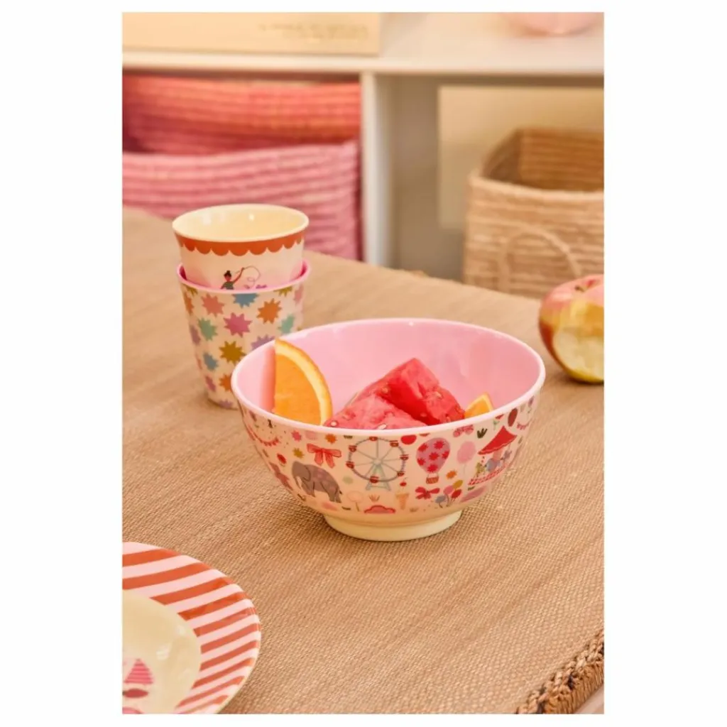 - Dégustez vos repas avec notre petit bol au motif ludique de barbe à papa, ballons, carrousels et autres sur fond rose – ce motif est connu sous le nom de « Fun Fair » ! Fabriqué en mélamine, ce bol est à la fois robuste et parfait pour un usage quotidien, grâce à sa durabilité et à sa facilité de nettoyage. Il résiste à l’absorption des saveurs et des couleurs des aliments, ce qui en fait un excellent choix pour les personnes de tous âges. N’oubliez pas qu’il est idéal pour servir des légumes et des en-cas, mais qu’il ne passe pas au micro-ondes.