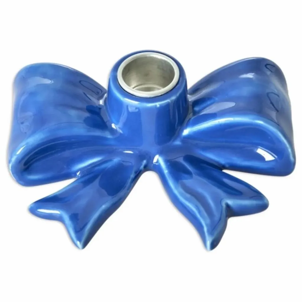 - Ce charmant bougeoir en forme de nœud, d’un bleu tendre, est l’accessoire idéal pour toute pièce. De petite taille, il est parfait pour être mélangé et assorti à tous vos autres objets de décoration !