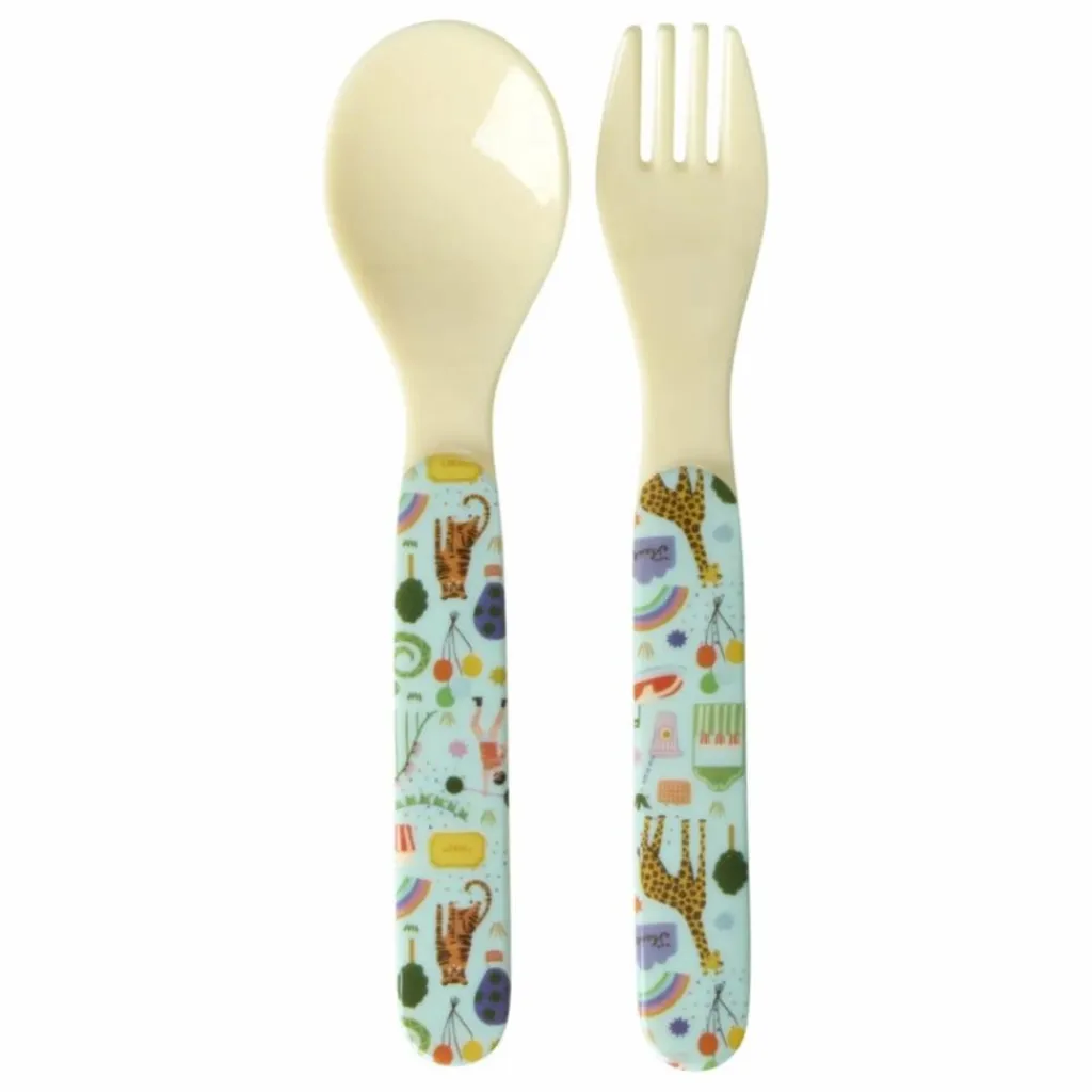 - Cuillère et fourchette en mélamine pour bébé avec impression Mint Fun Fair