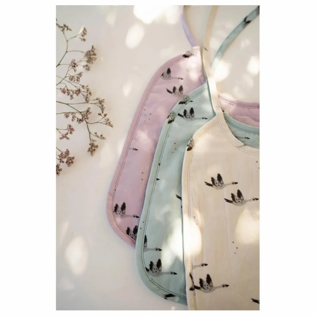 Accompagnez tous les repas du charmant bavoir Rose in April à l’imprimé oie.