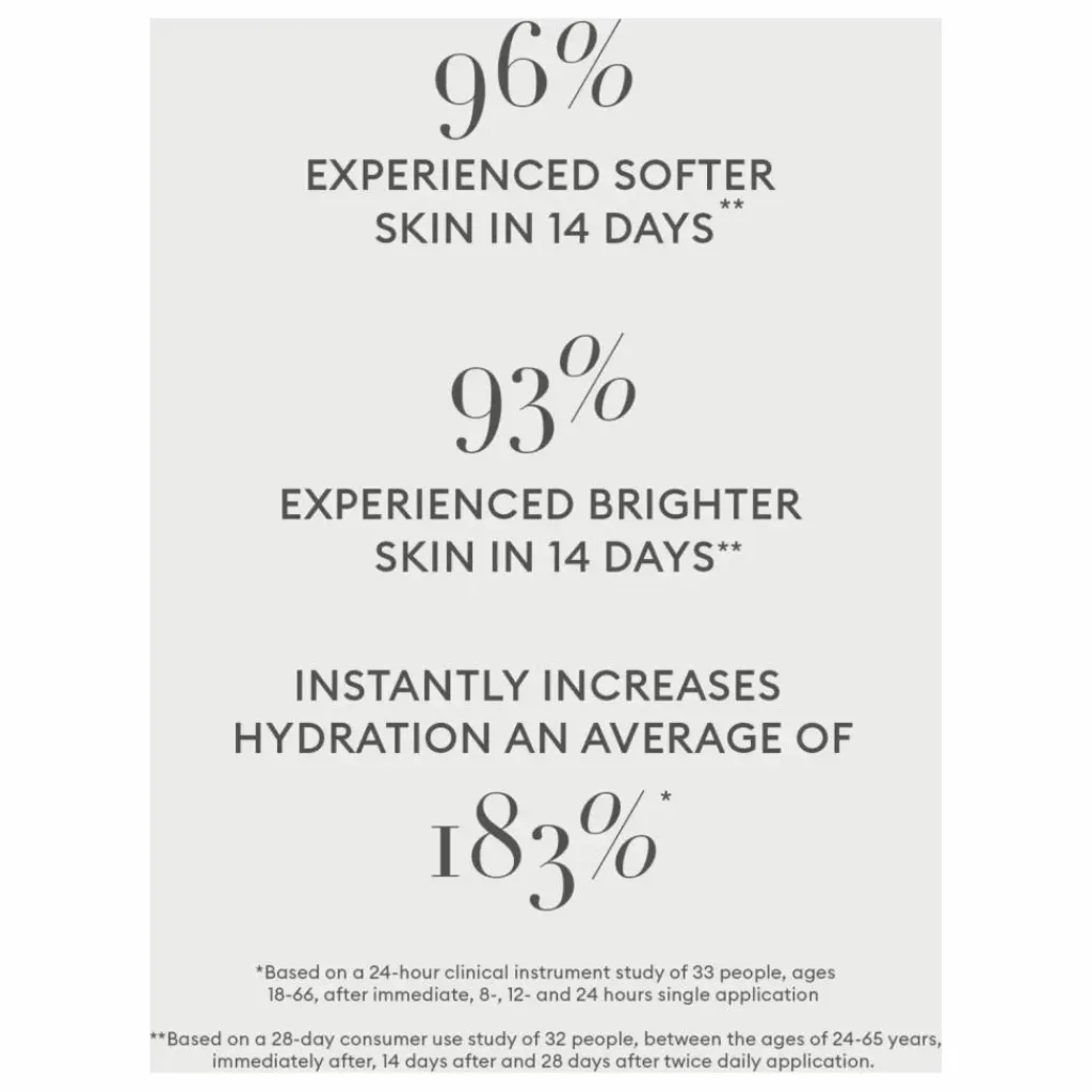 - SQUALANE, hydratant pur, durable et 100 % dérivé de plantes qui apporte une hydratation sans poids ; NIACINAMIDE, affine la peau visiblement irrégulière ; PEPTIDES, aident à améliorer l’élasticité.