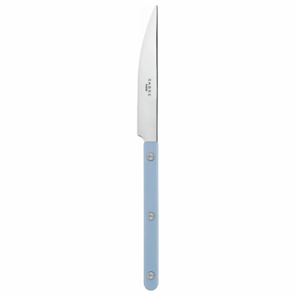 La marque Sabra a créé la collection Bistrot en s’inspirant de ces lieux de vie que nous adorons : restaurants, terrasses et cafés. En concevant ces couverts, l’objectif était de rester fidèles à cet esprit tout en apportant une touche de modernité. Les lignes sont simples, les rivets présents, et les couleurs ainsi que les matières se dévoilent : du rouge au bleu, avec des effets corne ou écailles. Disponible en finition brillante ou vintage, cette collection authentique et actuelle saura vous séduire.