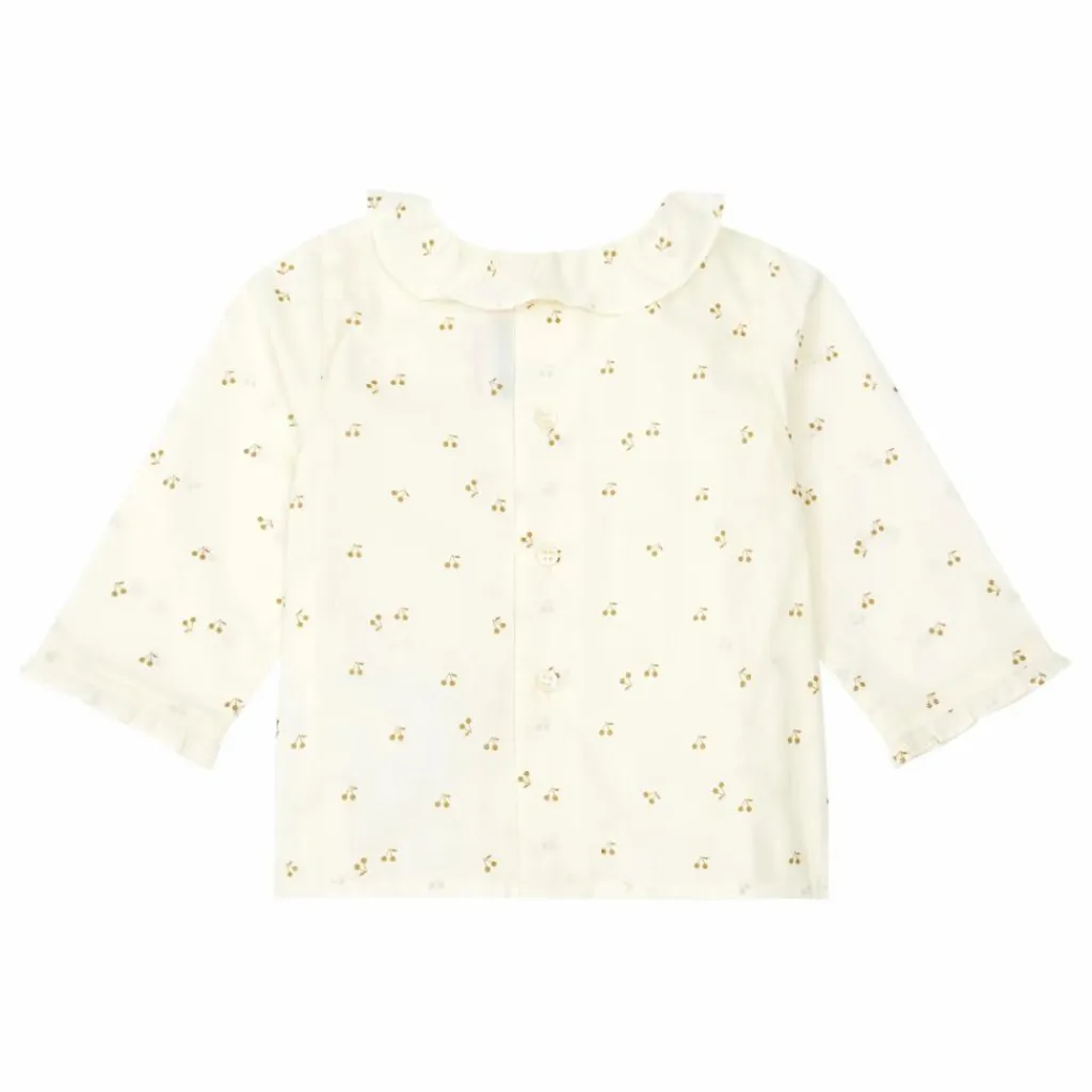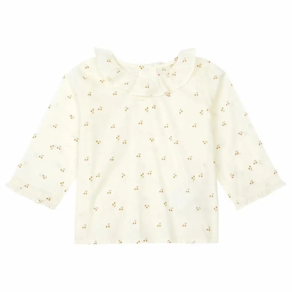 - En voile léger, cette blouse pour bébé Ganiti fait partie des pièces iconiques de la maison. Imprimée du logo cerise Bonpoint, elle se pare d’un élégant col volanté.