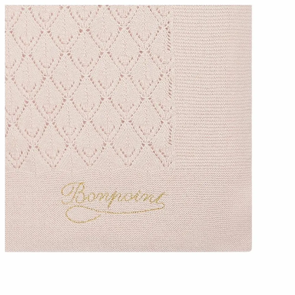 Cette couverture chaude formera un écrin de douceur pour bébé. Sa maille fine s’agrémente d’un ravissant motif en losanges ajourés.