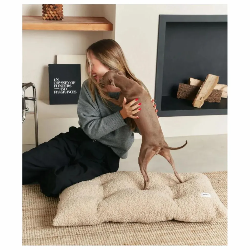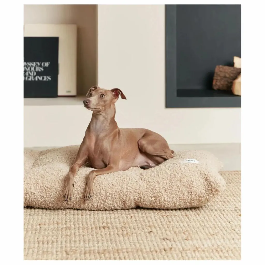 - Coussin pour chien en tissu imitant la peau de mouton, fabriqué en Europe.
