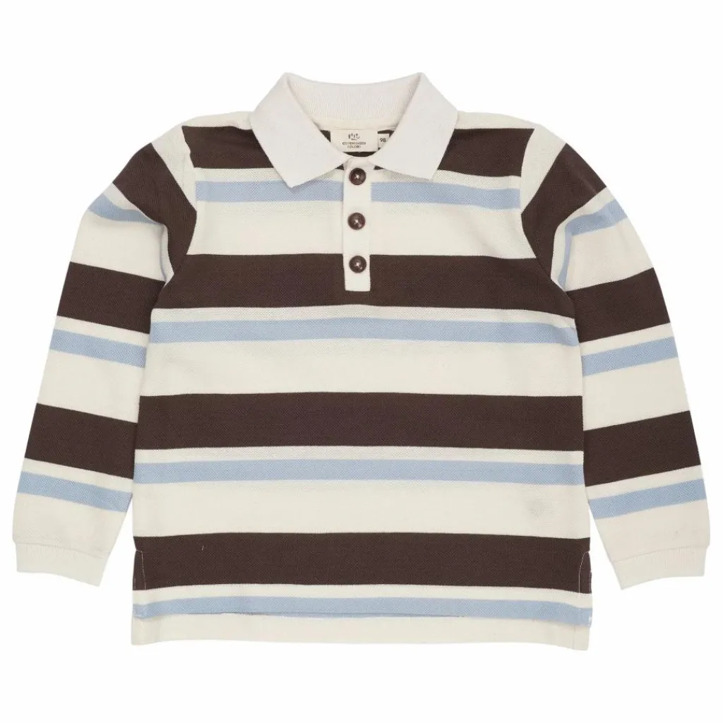 - Ce polo rayé est doté de manches longues et d’une fermeture à bouton sur la poitrine. Le polo est fabriqué en 100 % coton biologique, ce qui garantit le confort de l’enfant qui le porte.