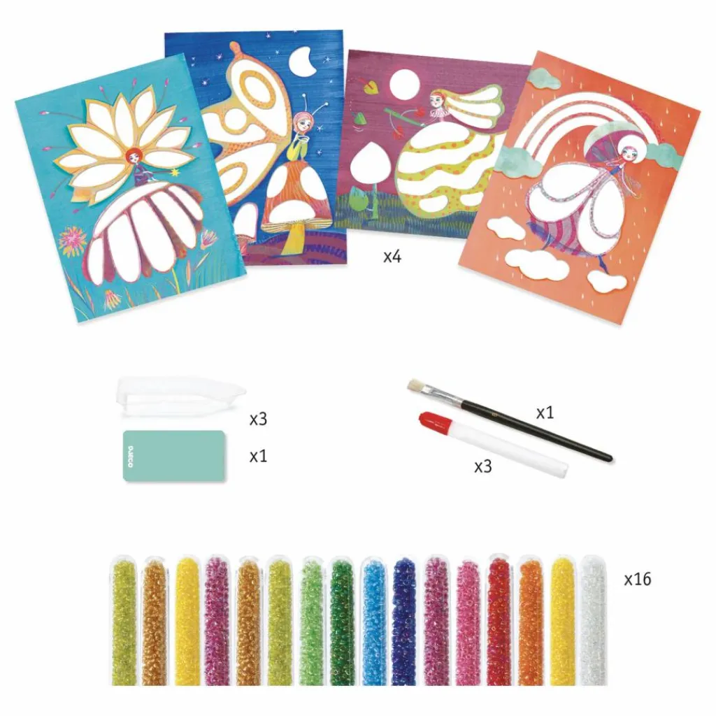 Créez de beaux tableaux sur le thème des fées. Grâce aux zones en creux vous pourrez apposer les perles doucement sans qu’elles ne s’échappent.
