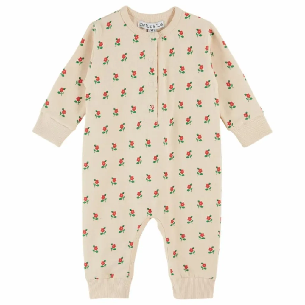 - Combinaison en coton biologique molletonné et gratté crème imprimé de coquelicots rouges en all-over.