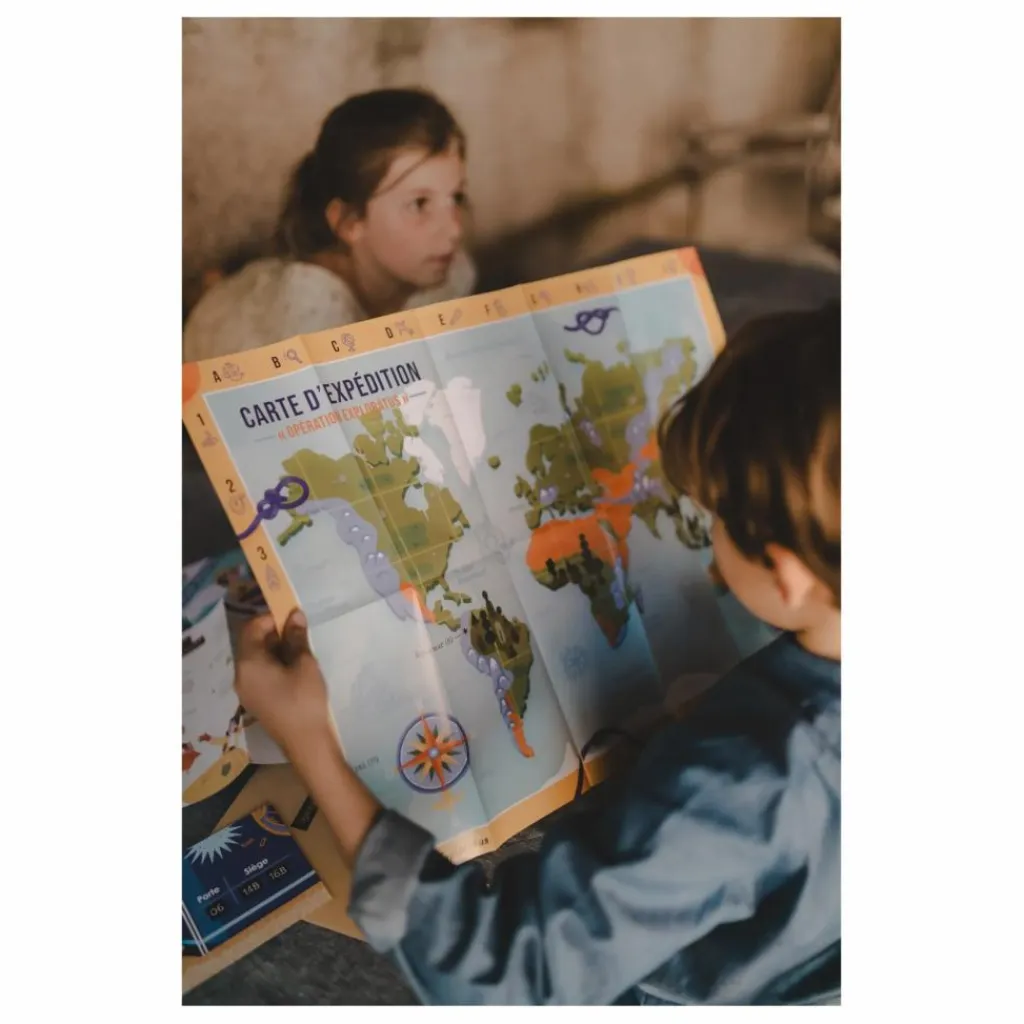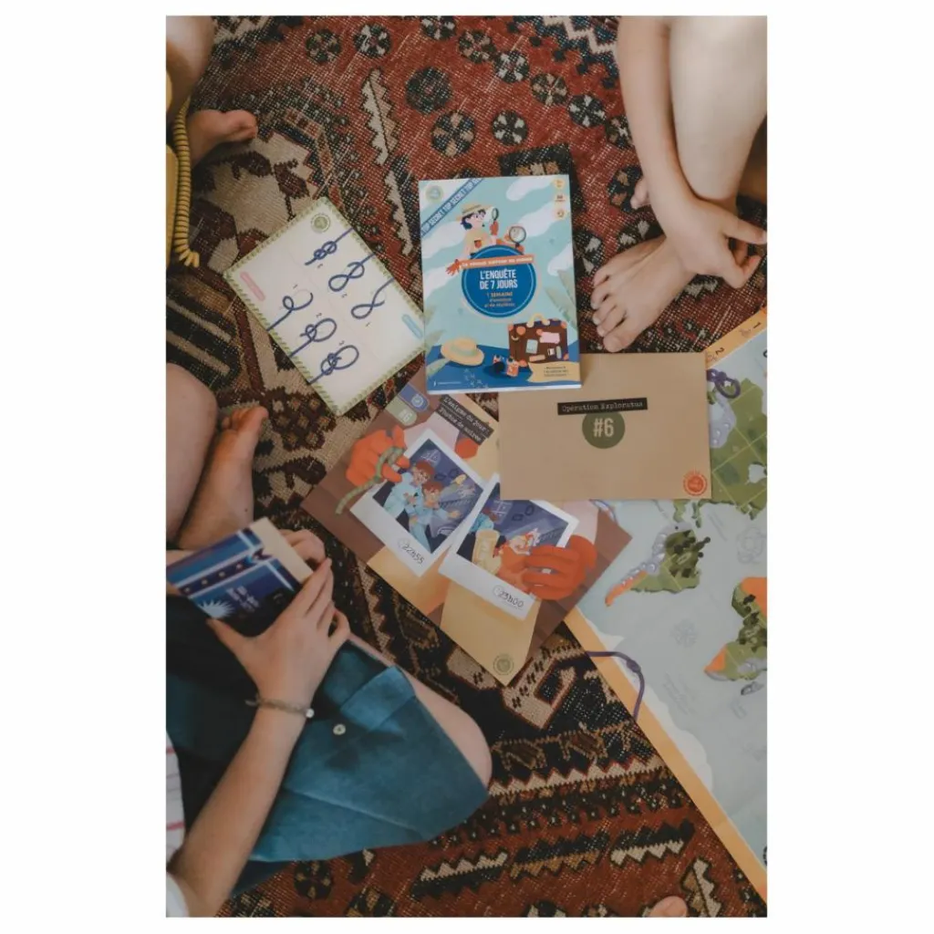 - 1 maxi carte d’expédition, 7 enveloppes pour les Enfants Espions, 20 énigmes à résoudre, 4 cartes d’identité d’Enfants Espions, 6 défis à réaliser, 6 cartes personnages 1 guide parent, 1 diplôme final, accès à tous les épisodes audio via un podcast dédié, accès aux ressources PDF pour pouvoir refaire l’enquête