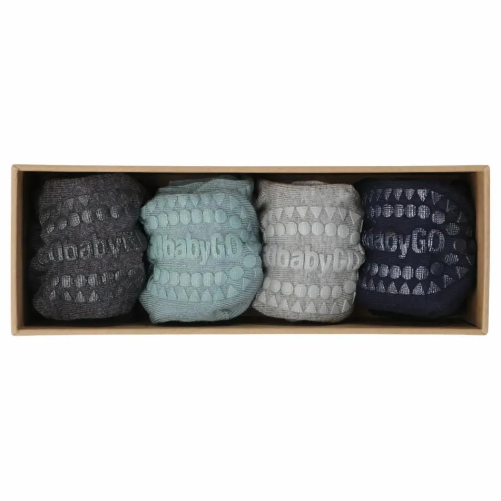 - Les chaussettes antidérapantes GoBabyGo en coton épais avec des coussinets en caoutchouc sous les pieds et sur le dessus des orteils gardent les pieds de votre enfant au chaud et veillent à ce qu’il ne glisse pas sur des surfaces glissantes lorsqu’il commence à marcher à quatre pattes et à marcher. Les chaussures d’intérieur à semelle dure peuvent limiter le développement des muscles et des os des petits pieds, et nous recommandons donc d’utiliser des chaussettes antidérapantes ou de marcher pieds nus aussi souvent que la température le permet. Conçu au Danemark et produit en Europe, ce produit est certifié selon la norme Oeko-Tex Standard 100.