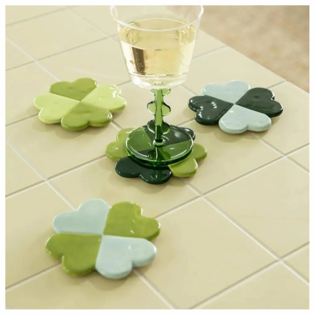 - Ces charmants sous-verres en forme de trèfle sont un ajout charmant et fonctionnel à toute table. Ils apportent une personnalité joyeuse à votre table tout en protégeant la surface sous-jacente. Ils apportent une personnalité joyeuse à votre table tout en protégeant la surface en dessous. Une touche de chance pour l’usage quotidien comme pour les occasions festives, ils sont disponibles en quatre nuances de vert pour s’adapter à tous les décors.