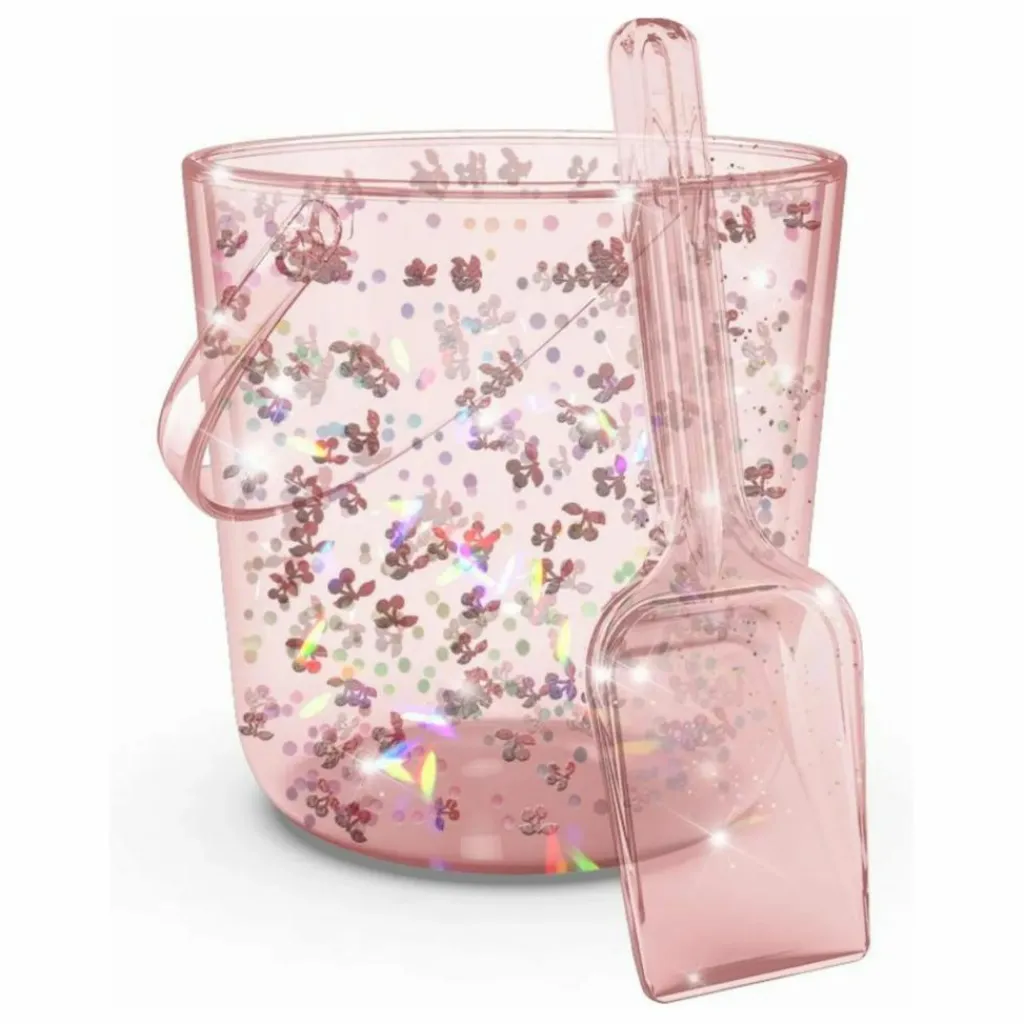 - Apportez un peu de paillettes et de glamour à la plage avec ce seau et cette pelle étincelants. Les paillettes dansent lorsque le seau est utilisé, ce qui le rend encore plus amusant. Matériaux : Partie principale : 100 % PCTG Remplissage : eau distillée avec paillettes en PET 3 ans et plus Certifié CE