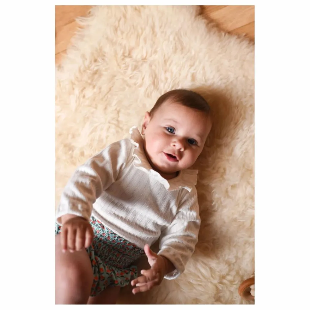 Retrouvez cette saison chez Lililotte le body Alba. Il sera parfait pour cet hiver dans sa maille bien épaisse et confortable coloris blanc. Alba en maille pointelle blanche s’associera à la perfection avec l’ensemble de notre collection bébé.