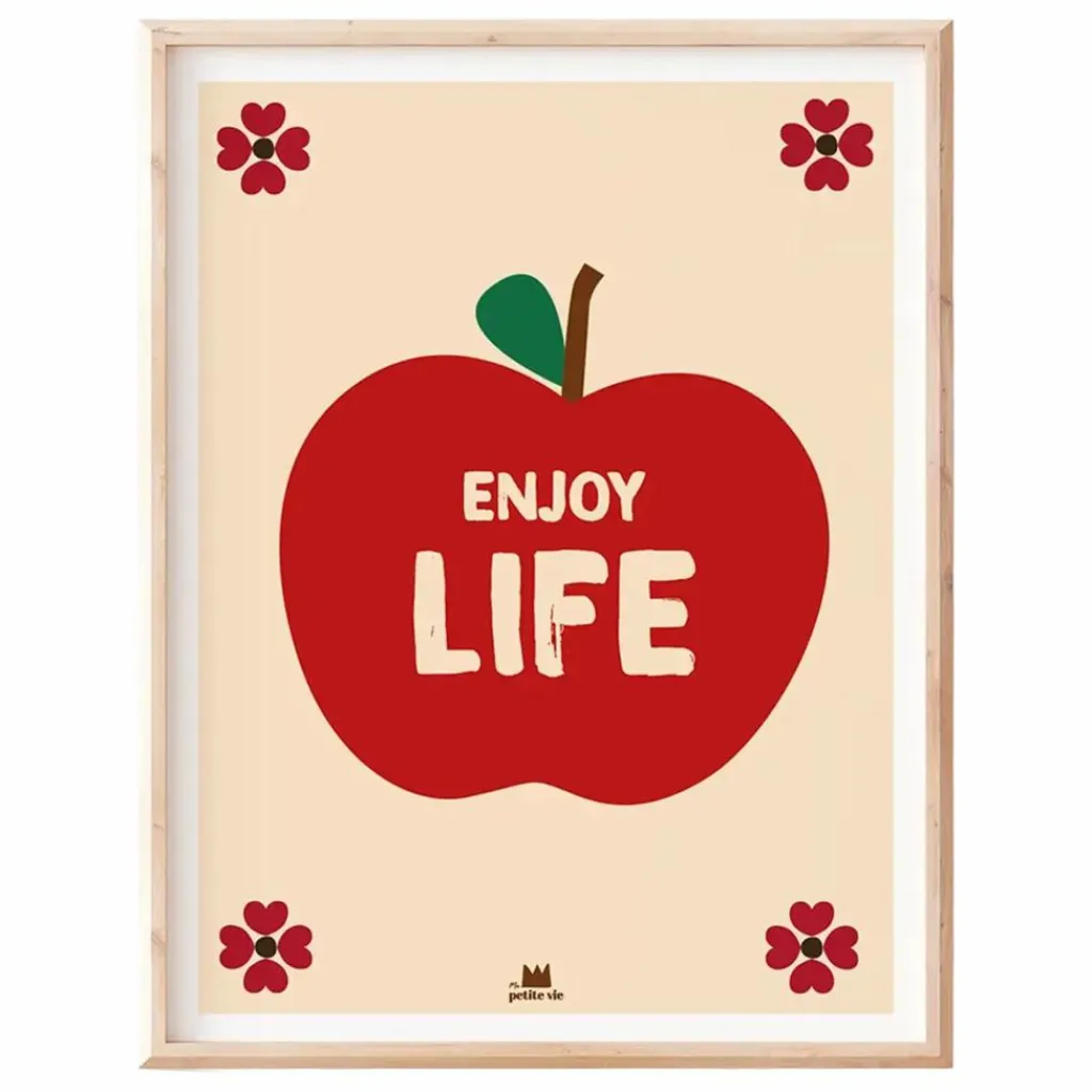 - Une pomme pleine de promesses, ronde et juteuse, comme un petit instant de plaisir simple. Enjoy Life vous invite à croquer la vie à pleines dents, à savourer chaque détail, chaque couleur, chaque moment. Un clin d’œil à la douceur du quotidien et aux petits bonheurs qui font sourire le cœur.