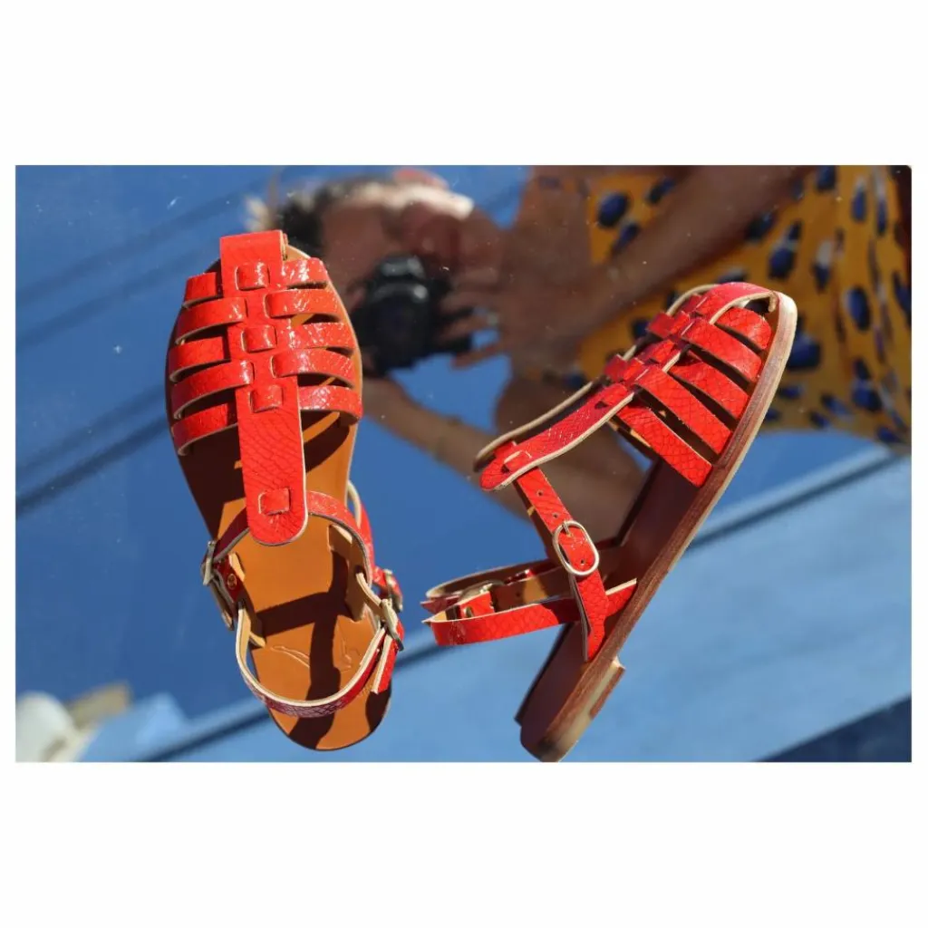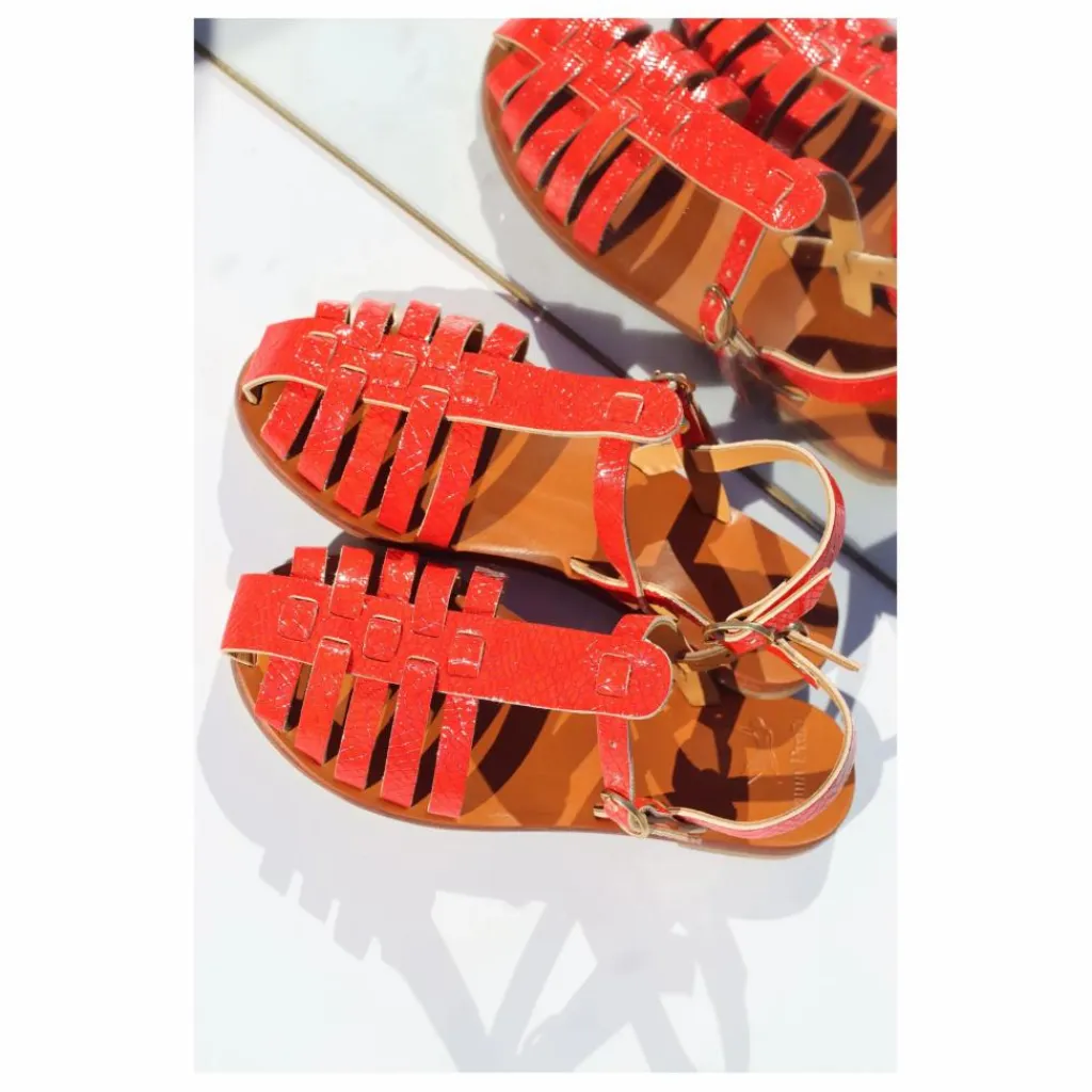 Les sandales Fisherman Mama Praia en cuir rouge vernis revisitent un classique avec une touche éclatante et assumée. Leur cuir verni rouge profond capte la lumière et souligne l’élégance de leur design structuré. Deux brides ajustables sur le cou-de-pied permettent un ajustement précis, assurant confort et maintien. Avec leur semelle et leur doublure en cuir tanné végétalement, elles allient durabilité et caractère. Un modèle audacieux, parfait pour apporter une touche de couleur et de brillance à une silhouette, qu’elle soit minimaliste ou plus affirmée.