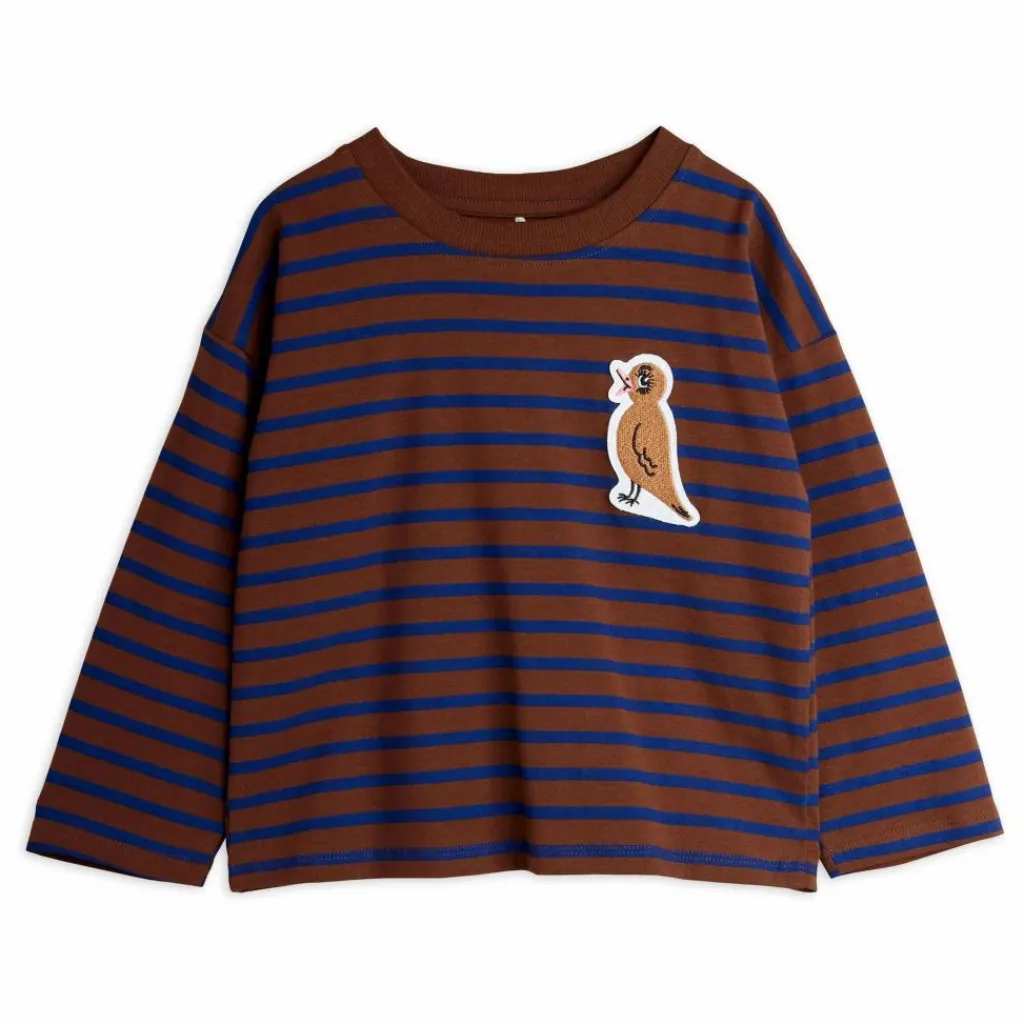 - Stripe bird patch long sleeve T-shirt