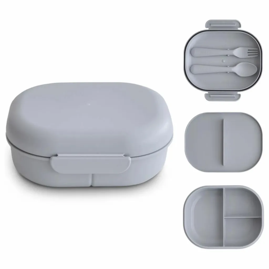 - Le Lunch Box de Mushie est la boîte idéale pour les repas sur le pouce. La cloison sépare les différents types d’aliments et les garde en sécurité jusqu’à l’heure du repas grâce aux compartiments intégrés et au couvercle hermétique.