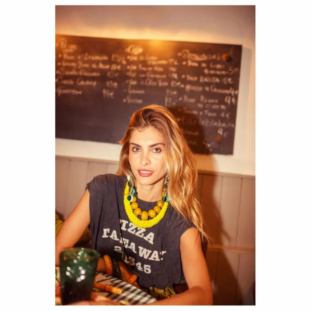 - Top sans manches à col rond et effet plissé sur les épaules. Ourlets côtelés. Imprimé sur le devant. Petit logo imprimé au dos.